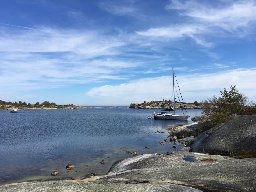 Fjärdlång… da die beliebteste Bucht entsprechend überfüllt war lagen wir in der östlich gelegenen Sjunkviken. Hier spielte sich auch die erste Episode mit Heckanker ab.