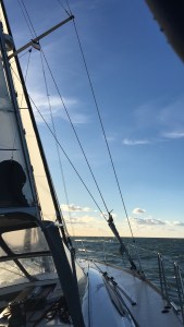 Kühlungsborn… unser Heimathafen… immer wieder schön… mehr noch, wenn das Vielmeer mal nicht mit der Livemusik den ganzen Hafen bis 1 Uhr nachts unterhält. Aber das gehört in der Saison dazu. Unlängst wurde uns mal gesagt: „Wohin wollt ihr eigentlich segeln? Ihr seid doch schon da!“ Sowas hört man über seinen Heimathafen natürlich gerne. Und so war es auch zu verschmerzen, dass unser Herbsttörn mit einem ausgedehnten Hafenaufenthalt begann. Nun war es nachts ruhig. Zumindest was von Menschenhand geschaffene Musik angeht. Rassmus hat die Wanten heulen lassen.