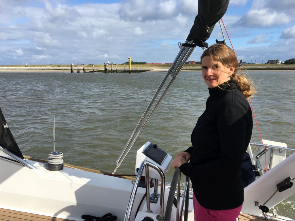 Nicht nur das… auch La Skipper lag den ganzen Tag eher zurückhaltend an und unter Deck und kämpfte mit chronischer Übelkeit. Da blieb dem Skipper keine andere Wahl als zum Wohl der Crew links abzubiegen und in den Hafen von Norderney einzulaufen. Durch das bei Windstärke 4-5 aus NW alles andere als ruhige Dovetief ging es in den Schutz der Insel und der Crew ging es schlagartig besser. Die Seebeine werden wohl erst noch wachsen müssen.