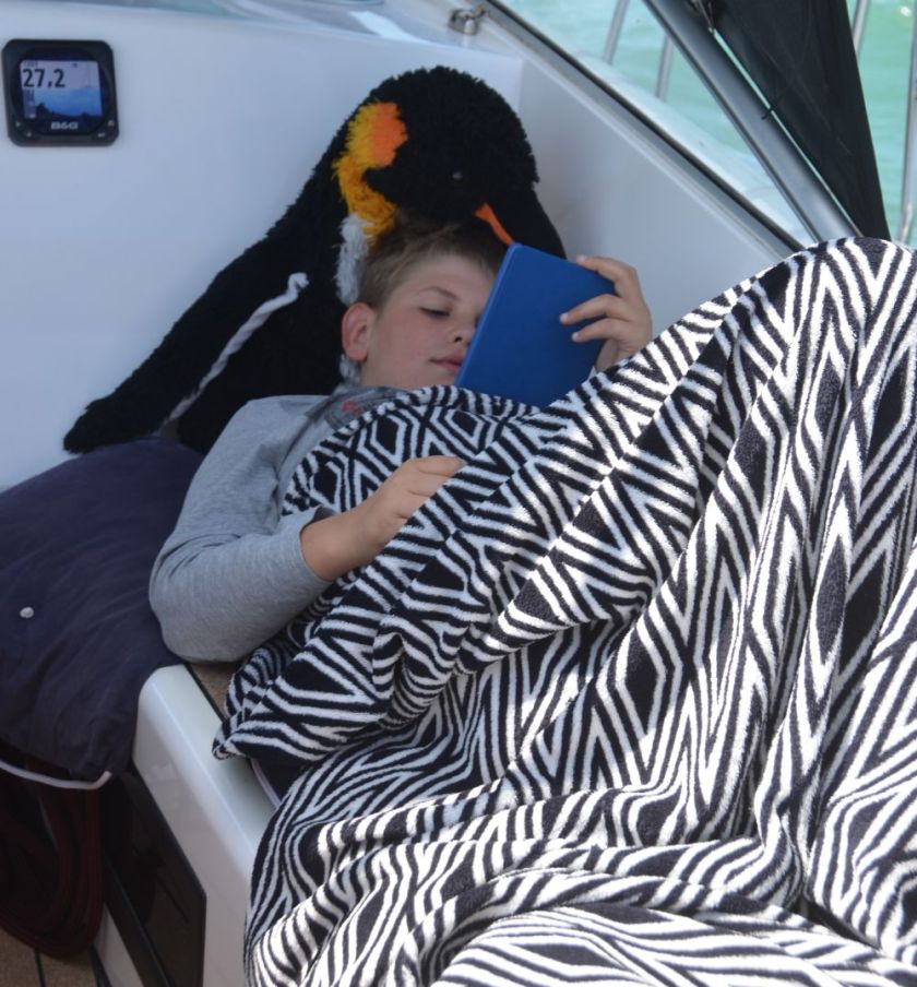 Wir sind jetzt nach zwei Nachtschlägen tatsächlich in England angekommen. Unser Start war von der Westfriesischen Insel Texel. Papa ist jede Nacht gesegelt. Ich war auch die ganze Zeit oben, habe immer bis halb zwei gelesen, bin danach vielleicht ab und zu etwas eingedüselt, aber ganz bestimmt nie eingeschlafen. Meistens wurde nachts der Wind schwächer. Beim zweiten Nachtschlag hat uns einmal sogar fast nur die Strömung getrieben. Jede Nacht sind wir an einem großen Windpark vorbeigefahren und ich habe die beleuchteten Tonnen fast nicht gesehen, weil die Windräder so viele rote Blinklichter hatten. Mama hat Papa um halb sechs morgens abgelöst.