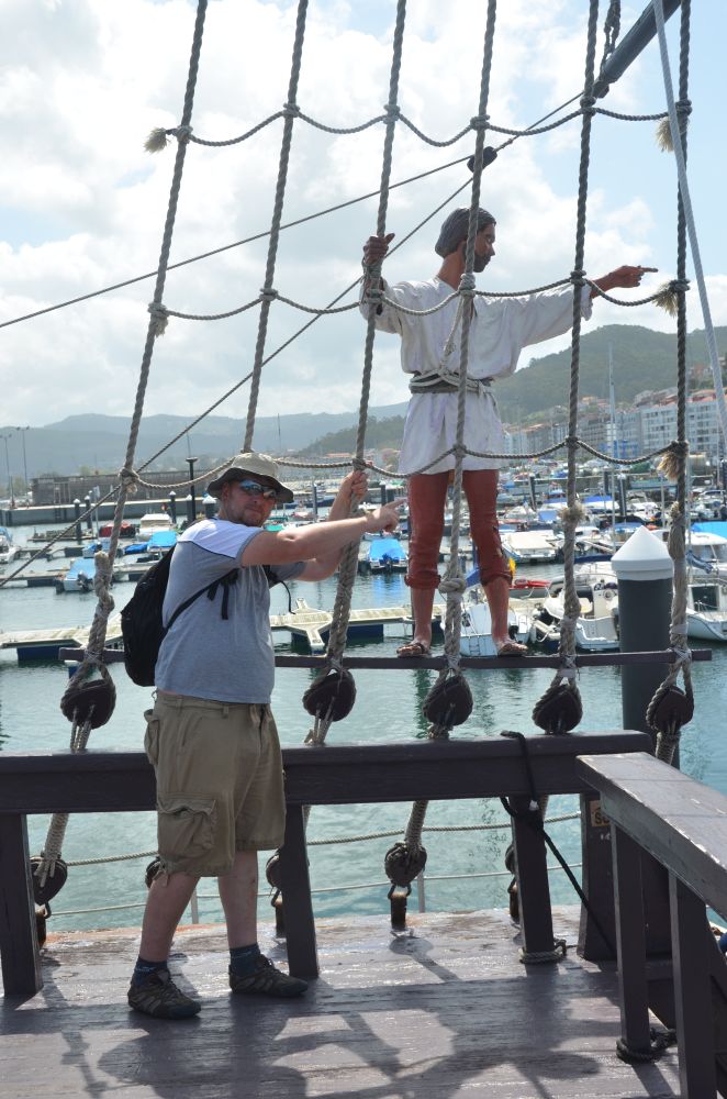 Nach zwei entsprechend wechselhaften Tagen, an dem auch der Anker mal wieder das ihn gesetzte Vertrauen bestätigen konnte, kam der Sommer dann doch wieder etwas um die Ecke gebogen. Altstadt und Festung von Baiona warten ebenso wie der Nachbau eines der Kolumbusschiffe im Hafen. Also ab ins Dinghy zum Landausflug. Bei zwei benachbarten Marinas werden wir schon einen Schwimmsteg finden, an dem wir festmachen können ohne jemanden zu stören. Und tatsächlich gab es solche Plätze reichlich. Alleine die Spanier überraschten uns. Nichts war zu spüren von südländischer Lässigkeit und Gastfreundschaft. Wir waren noch nicht richtig fest, da wurde wir auch schon wieder verjagt. „This is a private marina, I cannot let you have the dinghy here when your boat is not using (and paying for) one of our moorings.“ Im Hafenbüro des Nachbarhafen kam als einziger Lösungsvorschlag, uns einen Tagessatz für den kleinsten Liegeplatz zu berechnen… also ca. 20€ für ein paar Stunden Dinghy festmachen.