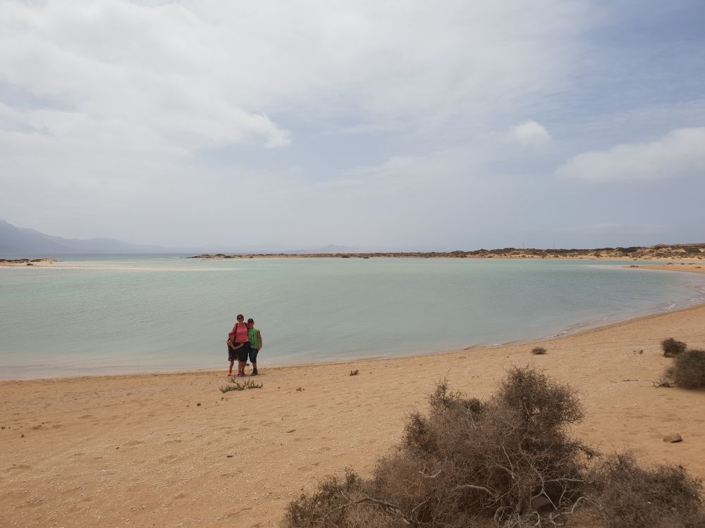 Auf eine der angebotenen Jeep-Tours oder das Ausleihen von Fahrrädern (die es ohnehin nicht in Kindergrößen gab) hatte wir verzichtet und waren dafür zu einem ganz profanen Badeausflug eine Bucht weitergelaufen. Faszinierend zu beobachten, wie das anfangs ohnehin recht flache Wasser mit der Ebbe immer mehr ablief, bis zum Baden rein gar nichts mehr übrig blieb. Dort hatte sich dann insbesondere der Skipper einen Sonnerbrand geholt, der die Erinnerung an diesen schönen Tag noch einige Zeit schmerzend wachhielt.