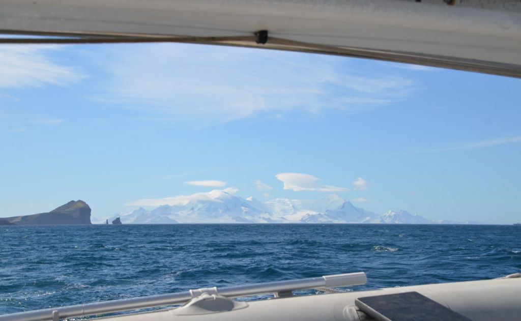 Der Rest der Fahrt verlief recht ereignislos. Maila war natürlich etwas betrübt darüber, die Schwertwale verpasst zu haben, wurde aber kurz vor unserer Ankunft mit ein paar Mink- oder Buckelwalen (die sind echt nicht leicht auseinander zu halten, wenn sie nicht gerade direkt neben dem Boot schwimmen) getröstet. Bei Enterprise Island lag dann natürlich auch wieder ein Kreuzfahrer, der sich durch die zwei ankommenden Segelboote offensichtlich massiv in seinen „Operations“ (aka Touristenbespaßung) gestört fühlte, doch davon ein anderes Mal im Rahmen meiner IAATO-Notizen mehr.