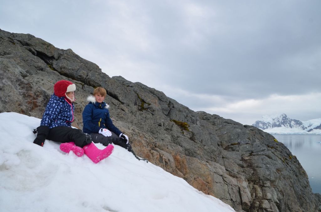 Am nächsten Tag dann die Ausfahrt mit dem Dinghy zur Brown-Station. Und hier warfen aktuelle Ereignisse ihren Schatten. Die davor ankernde Sarah wurde nach einer maritimen Gesundheitsbescheinigung Ihrer Gäste gefragt. Der Corona-Virus lässt grüßen. Wir landeten einfach mal am Strand an, werden dann aber auch gleich von der – wie sich herausstellt – Stationsärztin heran gewunken. Ein nettes Gespräch, bei uns als schon über ein halbes Jahr segelnder Familie sei keine Bescheinigung nötig, freundliche Empfehlung für unsere Besichtigung der Umgebung, die Station mit Ihrer Pinguinkolonie sei aber weitgehend tabu.