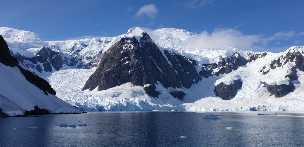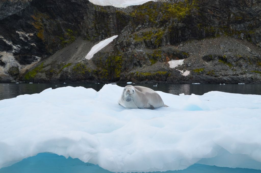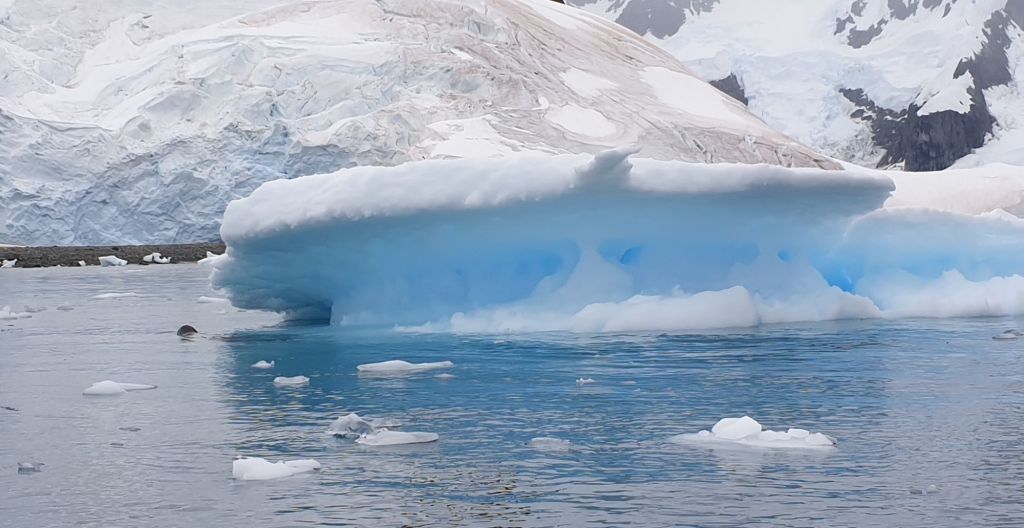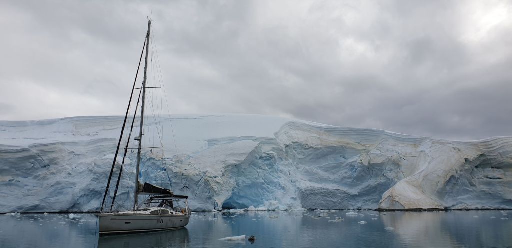 Doch bevor wir einfahren können, müssen wir noch durch das Weiß des südlichen Paradise Harbour. Der große Petzval Gletscher sorgt ständig für eisigen Nachschub und der wenn auch nur schwache Wind sorgte dafür, dass dieser auch dort unten blieb. Langsame Fahrt voraus mogelten wir uns durch die Brocken bis sich an Backbord die Sicht in die Bucht öffnete. Rund? Ja. Gut geschützt? Sieht so aus. Eisfrei? Mitnichten. Allerdings war dies wohl auch wieder nur eine Frage der Definition. Ja, da schwamm reichlich Krümelzeug und einige Brocken umher, aber die größeren Growler blieben tatsächlich draußen. Nur die Abbruchkante war uns nicht ganz geheuer… wir hielten uns doch lieber auf der anderen Seite. 40m Kette auf 10m Wassertiefe hielten uns bei lokaler Windstelle auf der Stelle und bescherten eine ruhige Nacht.