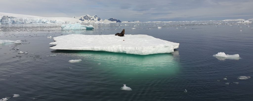 Immer wieder zeigten sich Wale und Robben im Wasser…letztere gerne auch auf Schollen.
