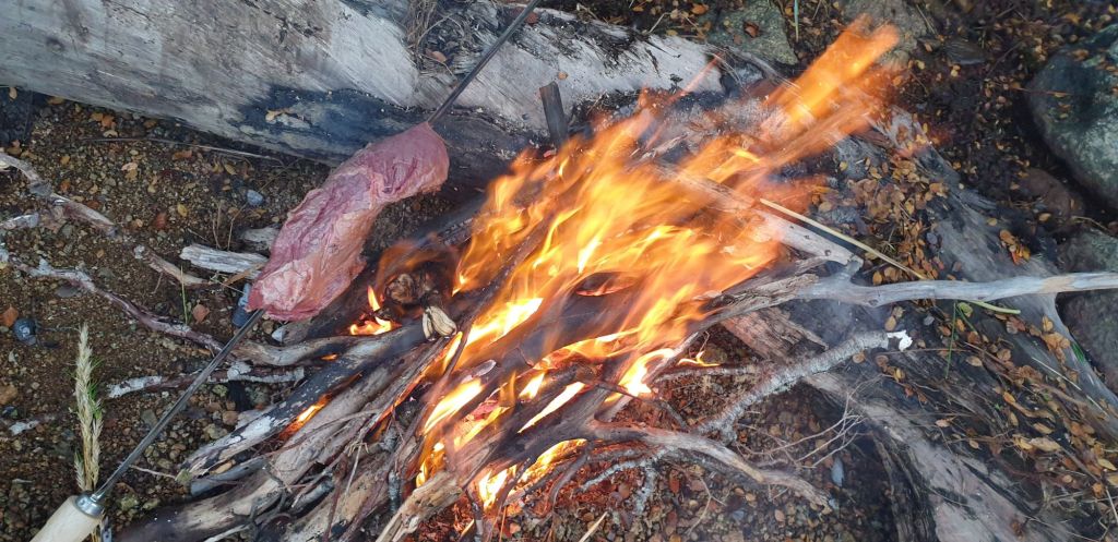 Nachdem die Kinder sich etwas ausgetobt hatten, veranstalteten wir am Strand ein kleines Asado. Einfach ein mit groben Salz eingeriebenes Stück Fleisch auf einen Spieß neben das Lagerfeuer gelegt, dazu selbstgemachte Guacamole mit Nachos. Die besten Dinge können so einfach sein.