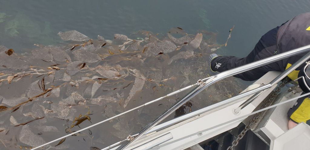 Schon am nächsten Tag ging es weiter nach Westen. Doch zunächst schickte das hier nahezu allgegenwärtige Kelp einen freundlichen Gruß an den Anker. Nein, es sieht natürlich nicht immer so aus. Doch an Tagen wie diesen war ich immer heilfroh über die für genau solche Fälle schon in Brasilien gekaufte Machete. Sie erleichterte die meist jedoch immer noch reichlich akrobatische Befreiungsaktion schon enorm.