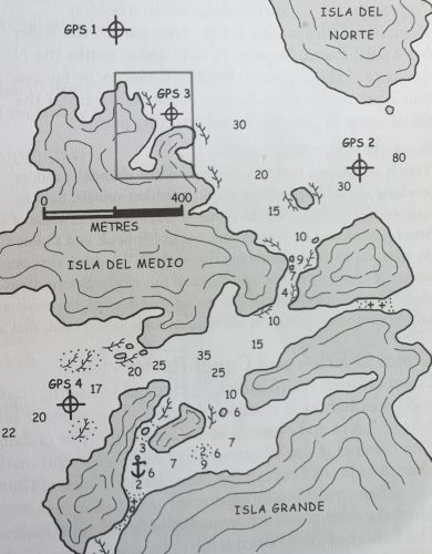 In diese Bucht wollte der Skipper schon beim ersten Blick auf die Skizze im nautischen Führer. La Skipper war nur etwas skeptisch wegen der engen Einfahrt. Zu recht. Dank eines nachlässiger Weise minimal falsch im Plotter eingetragenen GPS-Punkts fuhren wir im ersten Anlauf ein paar Meter zu weit westlich. Das reichte aus… Steine… laute Rufe vom Bug… Rückwärtsgang… durchatmen. Im zweiten Anlauf zwängten wir uns zwischen Kelp, Steinen und Ufer durch und fanden eine zwar schöne Bucht, die augenscheinlich allerdings nicht ganz so geschützt war, wie versprochen. Bei dem angesagten Wind (im Mittel 5, Böen 7 – Spitze 8, Böen 9… also über 40kn) gingen wir auf Nummer sicher: unsere 6 (in Worten sechs) Landleinen (plus Anker) belegten den gesamten hinteren Teil der Bucht und sollten uns sicher auf der Stelle halten. Taten sie dann auch. Der später reinkommende, ebenfalls für eine Nacht hier Unterschlupf suchende Fischer war aber wohl weniger begeistert. Er machte dann gleich bei der Einfahrt, etwa auf Höhe unseres Ankers fest.