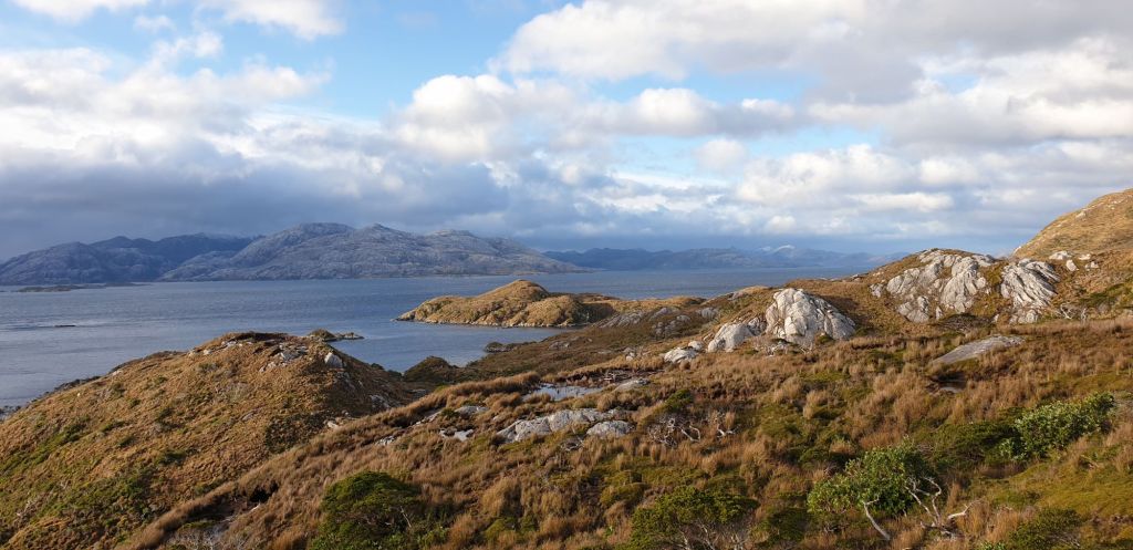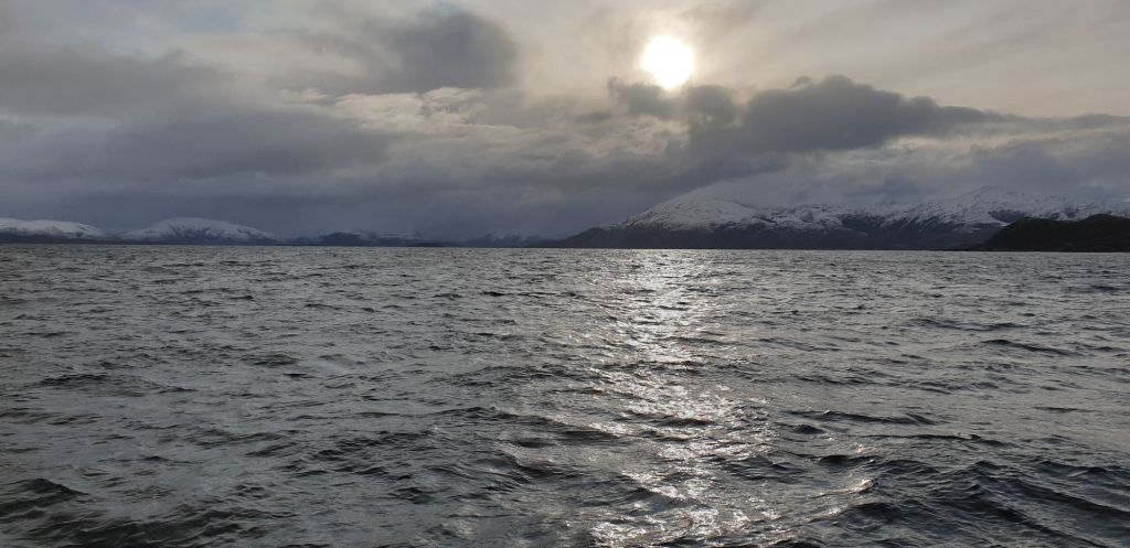 Eigentlich soll der Winter in den Chilenischen Kanälen die schönste Jahreszeit sein. Das Wetter ist ruhiger als im Sommer, regelmäßig scheint die Sonne vom strahlend blauen Himmel, dazu weiße Gipfel und keine Mücken. Ich sage mal so… die zwei letzten Punkte können wir bestätigen. Es ist aber auch erst Spätherbst… vielleicht wird das mit der (allerdings jetzt schon kaum über die Berge hinauskommenden) Sonne und blauem Himmel ja noch.