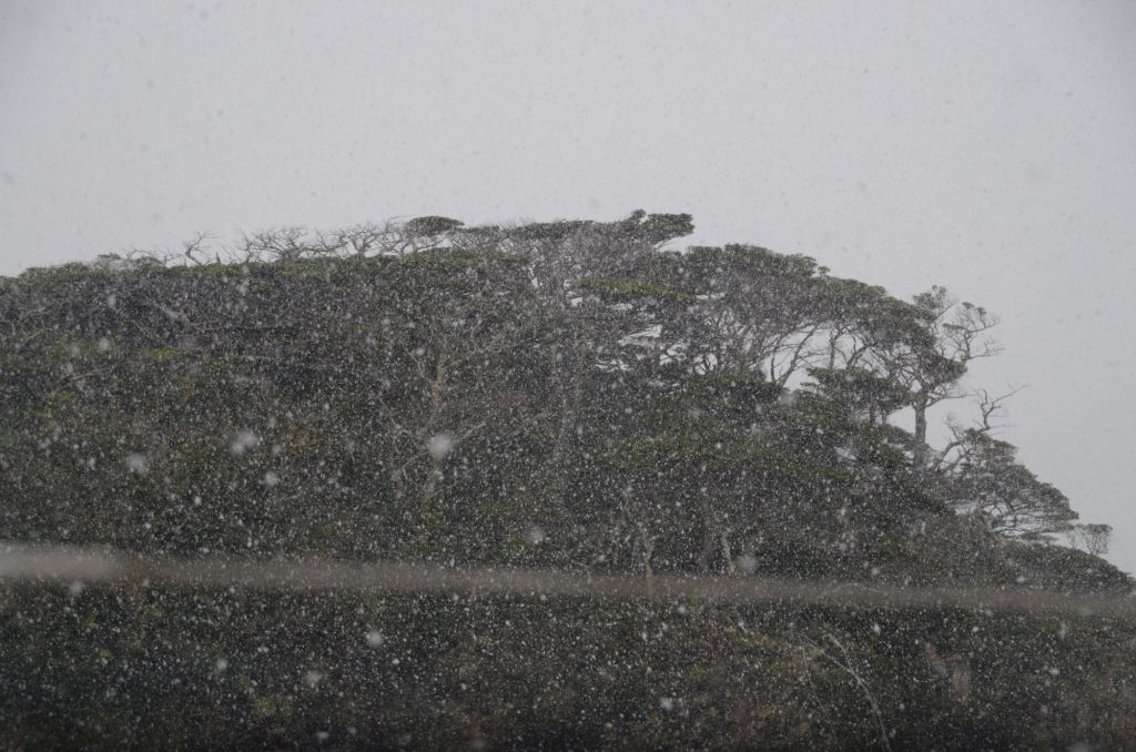 Sie kamen stärker als erwartet… von rechts hinten… um 1 Uhr nachts. Für den Skipper bedeutete das natürlich Arbeit. Das Dinghy wurde dann doch mal hochgezogen, die Leinen justiert und immer wieder erfolgte ein prüfender Blick nach draußen. So ab 5 Uhr bin ich dann doch nochmal etwas eingedöst. Der Morgen empfing uns mit Schnee und Graupel.