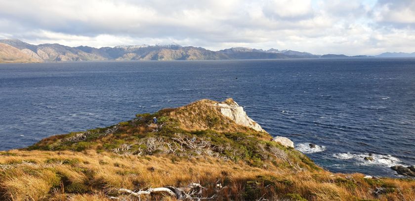 Am Tag dann ein Landgang. Der kleine Berg hinter uns war natürlich zu verlockend um nicht bestiegen zu werden. Der Wind hier oben raubte einem fast den Atem, den lauernden Raubvögeln über unseren Köpfen gefiel es.