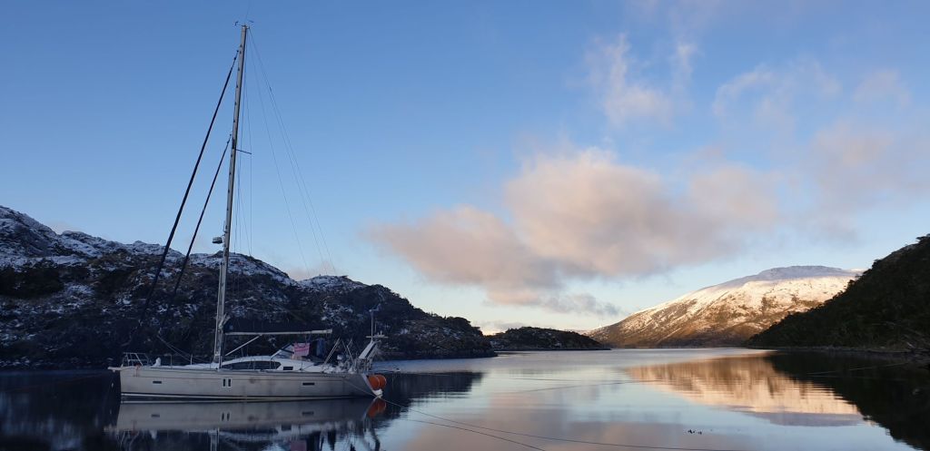 Vom Canal Cockburn zur Magellanstraße gibt es drei mögliche Kanäle zur Auswahl. Der westliche Canal Bárbara ist am kürzesten (ca. 50sm), aber nicht ganz einfach. Der Weg durch den östlichen breiten Canal Magdalena ist am längsten (100sm). Für Segler ideal ist der mittlere Canal Acwalisnan (ca. 65sm). Es gibt jedoch ein Problem: Die Chilenische Armada erlaubt offiziell nur die längste Durchfahrt. Dazu muss man wissen, dass ein Boot in Chile normalerweise ein sogenanntes „Zarpe“ benötigt. Im Abfahrtshafen wird nicht nur der nächste Hafen, sondern auch der dahin geplante Weg genannt. Diese Route muss genehmigt werden, erfährt gegebenenfalls auch schon mal eine Anpassung und steht dann in diesem offiziellen Zarpe. Der Canal Acwalisnan wird dabei normalerweise nicht genehmigt, so dass man hier nur halb-offiziell wetter- bzw. sicherheitsbedingt durchfahren darf. Oder man macht es wie wir… inoffiziell… ganz ohne Zarpe!