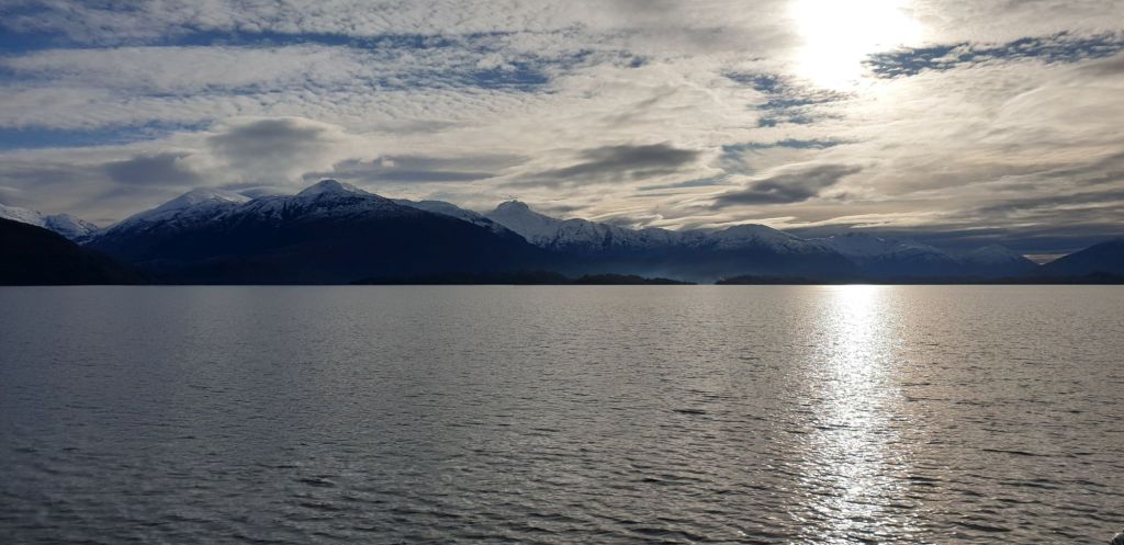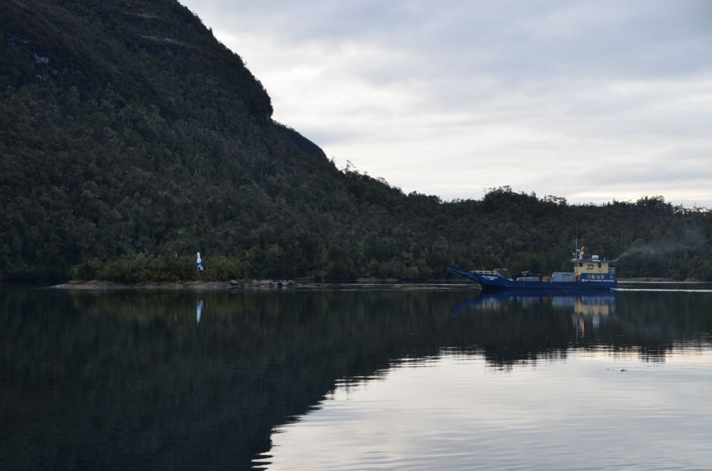 Der Canal Messier ist eine rund 70sm lange, vergleichsweise breite, wichtige Wasserstraße. Nun gut, von Überfüllung konnte man natürlich nicht sprechen, doch immer mal wieder sahen wir tatsächlich Frachter und Fischer, wobei letztere aber doch eher seltener wurden. Leider erging es uns hier so, wie schon den größten Teil unserer Zeit in Chile… mit Segeln war nicht so viel zu wollen, Motorfahrt war angesagt. Dabei zeigte sich auch wieder einmal, dass eine Vorhersage von Strömungen in den Kanälen nahezu unmöglich ist. Zwar gilt die Grundregel, dass die Flut nach Süden geht. Trotzdem hatten wir auch bei auflaufenden Wasser zwischenzeitlich guten Strom mit.