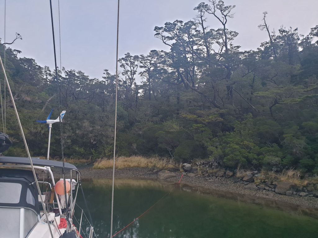 Viele Skipper kennen dieses Gefühl. Dieser kleine, nagende Zweifel, ob das auch alles so passt. Hält der Anker? Haben wir ausreichend Leinen? Was passiert, wenn etwas nicht hält? Ist diese Saat erst einmal gesäht, ist an Schlaf meist nicht zu denken. Genau solche Gedanken kamen dem Skipper der Samai um 3 Uhr. Ja, nachts. Geweckt vom aufkommenden Wind kündenden Propeller (aka Silentwind-Generator) begann das Kopfkino. Wir lagen vor Anker mit zwei Landleinen achteraus (also eher nach hinten). Die linke Leine hing durch, schließlich kam der Wind von Steuerbord (= in Fahrtrichtung rechts) hinten. Natürlich drückte dieser das Boot nach links. Wäre im Grunde ja auch nicht weiter schlimm, wenn die kleine Bucht etwas breiter gewesen wäre. Gerade mal gut 20m trennten die Ufer rechts und links von uns. Also insgesamt. Und das linke Ufer war schon zum Greifen nahe. Um halb vier quälte sich der Skipper also in sein Ölzeug, quetschte die gerade mal halbwegs warmen Füße in kalte Gummistiefel und machte das Dinghy los. Die Kontrolle der von Samuel ausgebrachten Leine war positiv. Ein stabiler Baum und auch der Knoten sah gut aus. Dann wurde noch eine weitere Landleine steuerbord querab (also nach rechts) ausgebracht und auf unsere Mittelklampe gelegt. Irgendwann nach 4 Uhr lag ich wieder im Bett. Schlaf? Nun ja… so leidlich. Gegen 7 Uhr früh brachten kräftige Böen dann die Gewissheit, dass sich der nächtliche Ausflug gelohnt hatte. Aber so richtig los wird man die Zweifel dann doch nur sehr schwer.