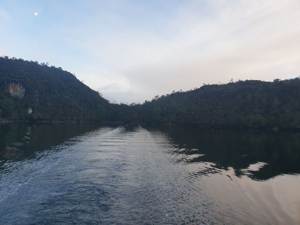 Das Timing wäre perfekt, doch war das für uns dann doch keine echte Option. Selbst diese angeblich so ziemlich abgelegenste und feuchteste Ortschaft der Welt hat trotz ihrer nur noch knapp 200 Einwohnern eine Station der Chilenischen Armada. Wir müssten uns per Funk anmelden, offiziellen Besuch an Bord erwarten, sicherlich einige Frage zu unserem Status beantworten (zur Erinnerung: keine offizielle Einreise in Chile und auch kein offizielles „Zarpe“!) und schlimmstenfalls würde man uns eine 2-wöchige Quarantäne aufbrummen. Darauf konnten wir gut uns gerne verzichten. Daher ging es vorbei an Puerto Edén.