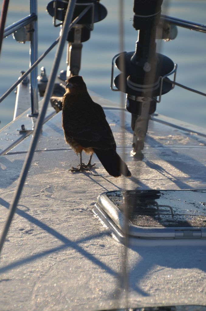 Das mit dem Genuss einer Bootstour sah ein gefiederter Gast anscheinend ähnlich. Der kleine Raubvogel bliebe lange an Bord, mal vorne, mal hinten, je nachdem wo einem die menschlichen Passagiere gerade mehr Ruhe ließen, und in Momenten besonderer Entspannung verrichtete er dann auch gleich mal sein Geschäft. Mehrfach. Na super!