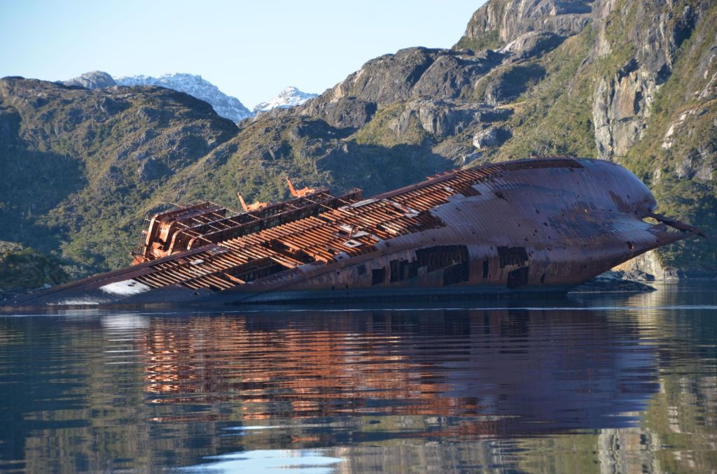 Samuel brannte darauf, endlich mal wieder ein Lagerfeuer zu machen, doch leider wurde hier daraus nichts. Es gab zwar zwei kleine, nicht direkt bewachsene Buchten, doch die hatten schon früher einmal leider weniger rücksichtsvollen Besuch bekommen. Ein altes Zelt, Glas- und Plastikflaschen ein Sprühdose und noch einiges andere Zeug lagen herum. Nein, hier würden wir es uns nicht gemütlich machen können. Leider erlaubten unsere sehr eingeschränkten Müllkapazitäten an Bord keine Aufräumaktion. So nahmen wir nur ein paar Kleinigkeiten mit und müssen hoffen, dass einer unserer Nachfolger besser helfen kann. Doch am Besten wäre es natürlich, wenn niemand erst seinen Müll herumliegen lassen würde. Das gilt natürlich uneingeschränkt überall, sei es in der weiten Natur der Chilenischen Kanäle oder auch dem Großstadtdschungel…