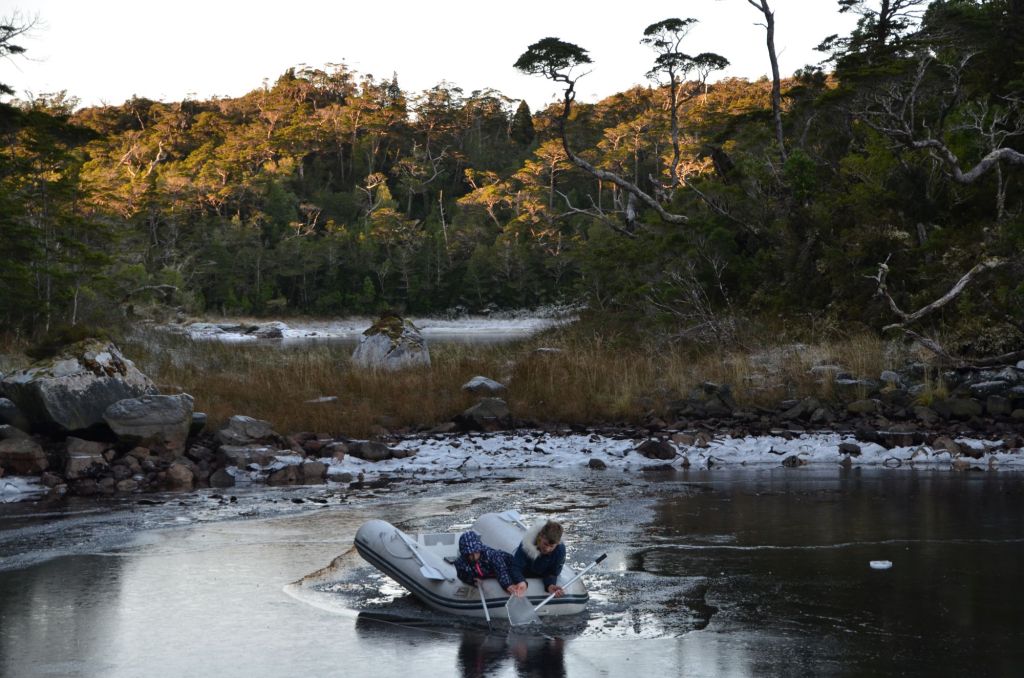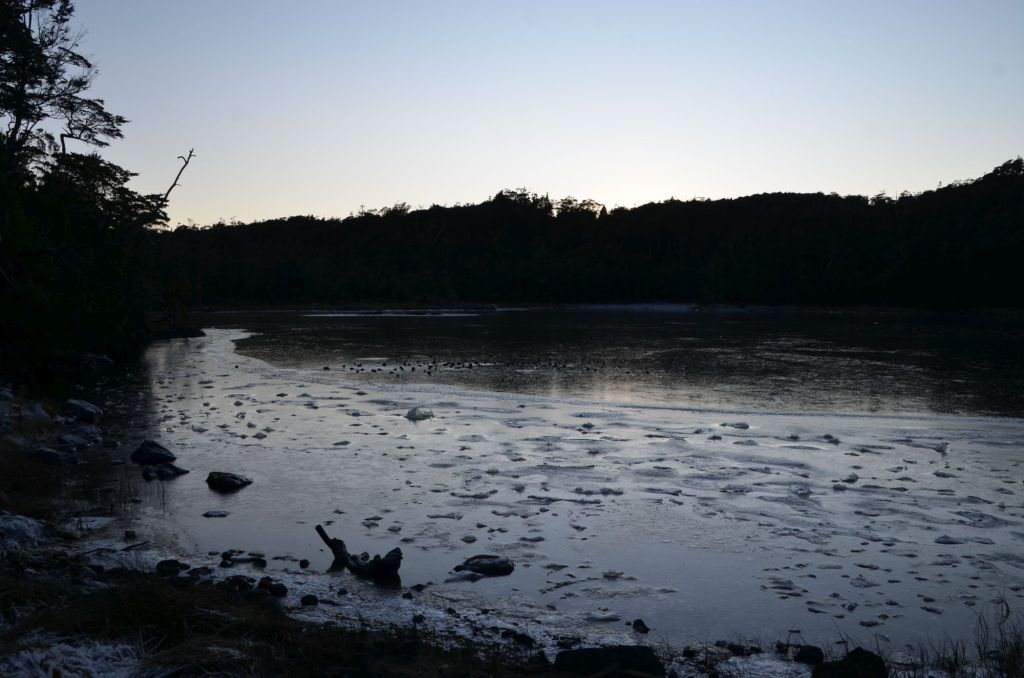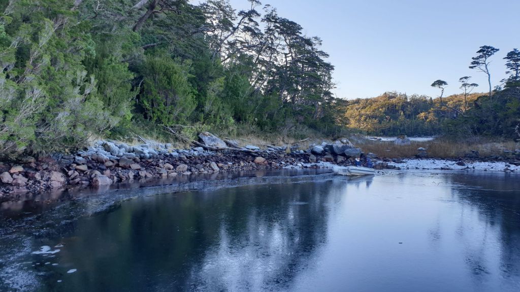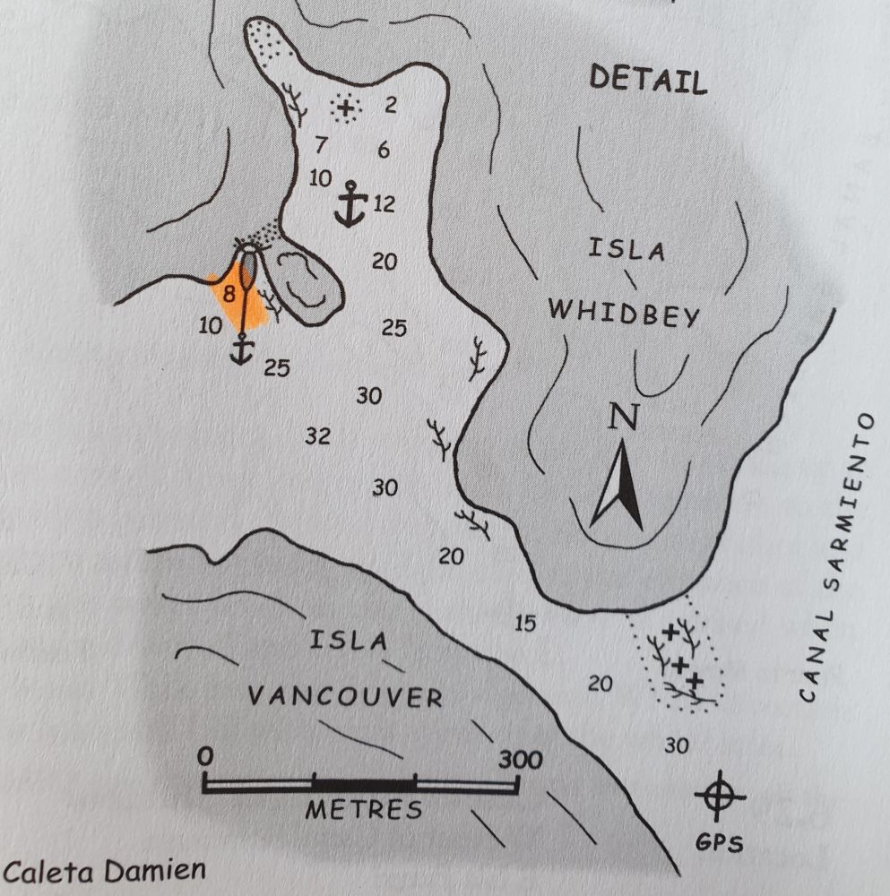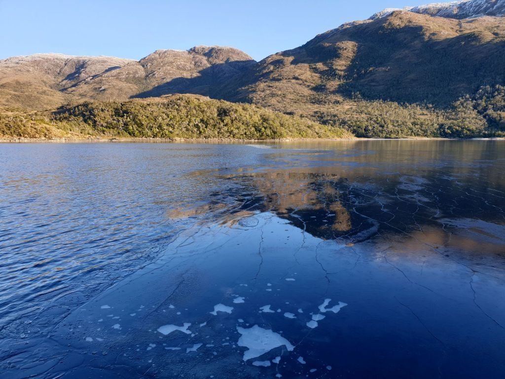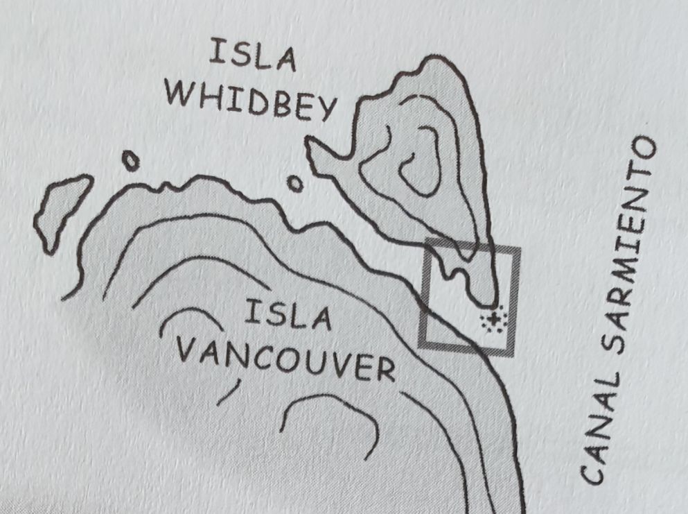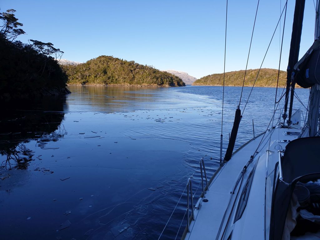 Die „blaue Bibel“ empfiehlt in der großen Bahía Hugh einen geschützten Platz hinter der kleinen Isla Bun. Doch was soll ich schreiben… genau diese Ecke war natürlich zugefroren. Das war inzwischen eine leider gut bekannte, wiederkehrende Problematik, die im Standardwerk vielleicht doch noch mal thematisiert werden sollte.