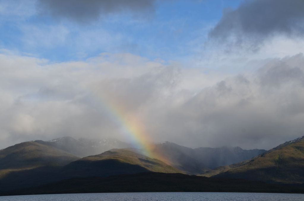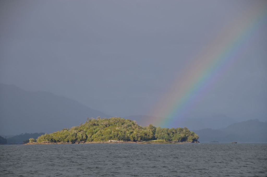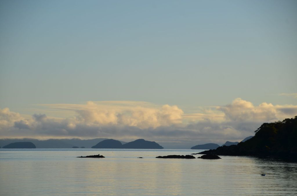 Viele Boote machen den Absprung Richtung Chiloé von den westlich des geschützten Canal Moraleda gelegenen Inseln über die Boca del Guafo. Das war auch unser ursprünglicher Plan, doch dann kam die Vorhersage kräftiger nördlicher Winde. Diese sollten dort im Westen mit bis zu 7 Bft., in Böen 9 Bft. (locker über 40kn) noch deutlich spürbar, auf der Ostseite dagegen deutlich schwächer sein. Dort lockte die Caleta Poza de Oro: „The beauty of the place is truely worth the detour; a perfect peace reigns over the bay.“