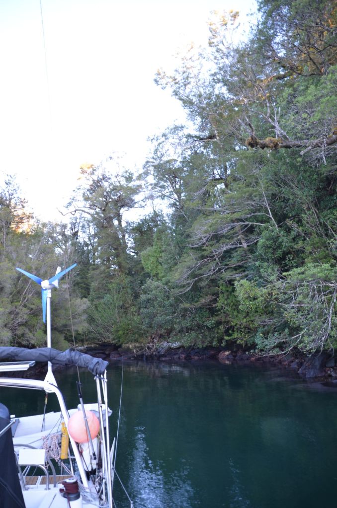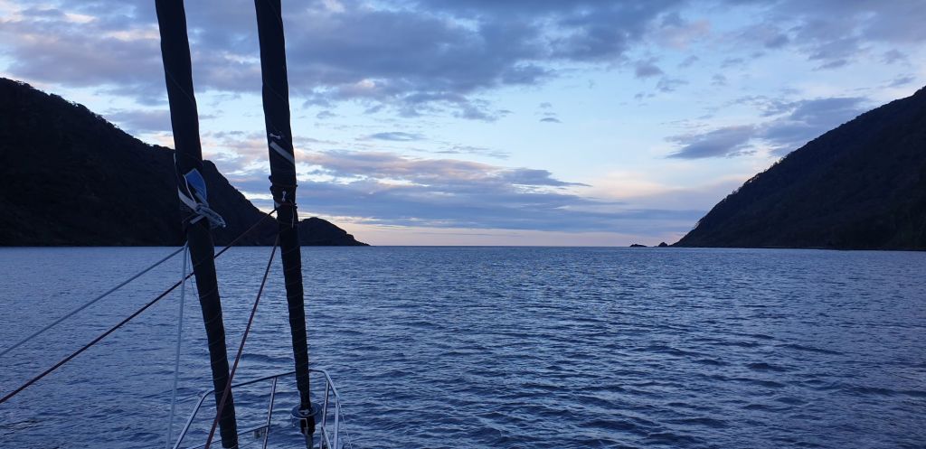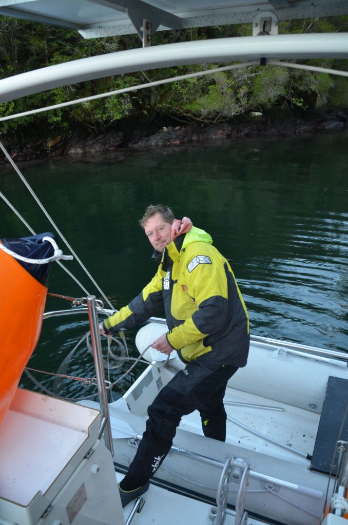 Schon im von Bergen eingerahmten Fjord blies es dann um einiges stärker. Das war aber eigentlich auch zu erwarten, da die Winde hier ja gerne mal kanalisiert werden. Als bei der Ausfahrt allerdings plötzlich bis zu 30kn Wind von hinten kam, hätte man eventuell schon mal stutzig werden können. Doch kaum um die Ecke der Peninsula Skyring Richtung Norden abgebogen, war der Spuk auch schon wieder vorbei. Nun hatten wir unsere eine Windstärke und motorten weiter zum Cabo Taitao. Dort mussten wir dann für die verbleibenden 25sm Richtung Osten in die Bahía Anna Pink abbiegen. Und dann kam der Wind.