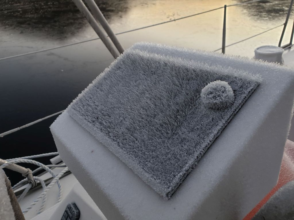 Wohl jeder Segler versucht wohl das Erlebnis von Nachtfrost an Bord eines Bootes zu vermeiden. Das ist ehrlich gesagt auch eine richtig gute Idee, doch nicht überall möglich. Schon gar nicht im Winter, noch dazu in hohen Breiten. Doch letztlich war die Route ja selbstgewähltes Schicksal. Also dicken Schal umgeworfen, Sonnenbrille auf und lächeln… das war alles so geplant ;-)