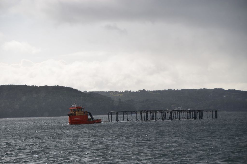 An der Küste dominierten mehr und mehr Häuser, Felder, Wiesen, Kühe und Schafe das Bild. Doch die Bewirtschaftung endete nicht an Land. Auch auf dem Wasser zeigten sich immer häufiger Bojen von Auster- und Netzgehege von Lachsfarmen. Sie geben Zeugnis davon, dass Chile es mittlerweile zum weltweit zweitgrößten Lachsproduzenten gebracht hat.
