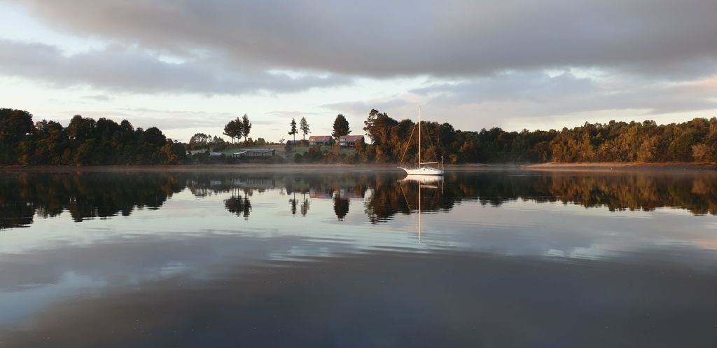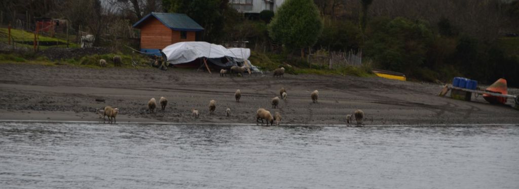 Tagesziel ist eine kleine Inselgruppe vor der Ostküste Chiloés. Das Hauptdorf bietet zwar eine Ankerbucht, doch wir ziehen es vor, das Grundeisen eine etwas ruhigere Ecke weiter, nördlich der Isla Añihué zu werfen. Zumindest dachten wir, dass es ruhiger sei.