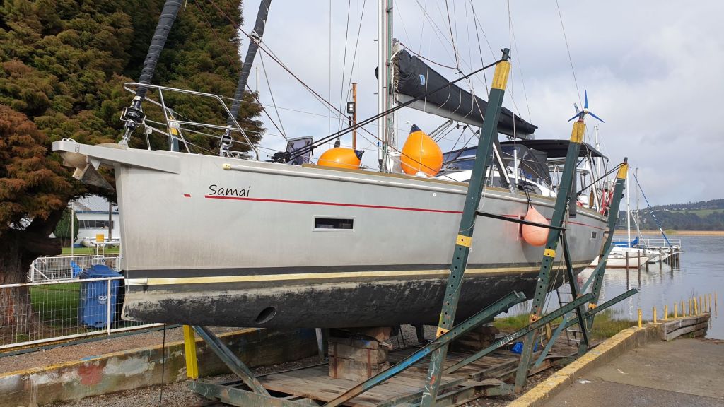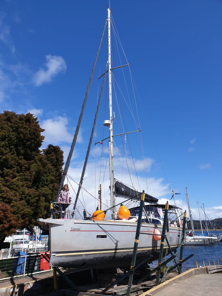 Nun liegen wir also wieder im kühlen, hier im Valdivia-River sogar süßen Nass. Unter Wasser ist der Rumpf, wenn schon nicht ästhetisch, so doch wieder gut geschützt und die Zeit wird zeigen, was wir unserem Boot als nächstes Zumuten. Korallen der Südsee oder sogar nochmal ins Eis? Wie auch immer, wir haben volles Vertrauen, dass unsere Samai und natürlich auch wir alles, was noch kommen mag, heile und gesund meistern.