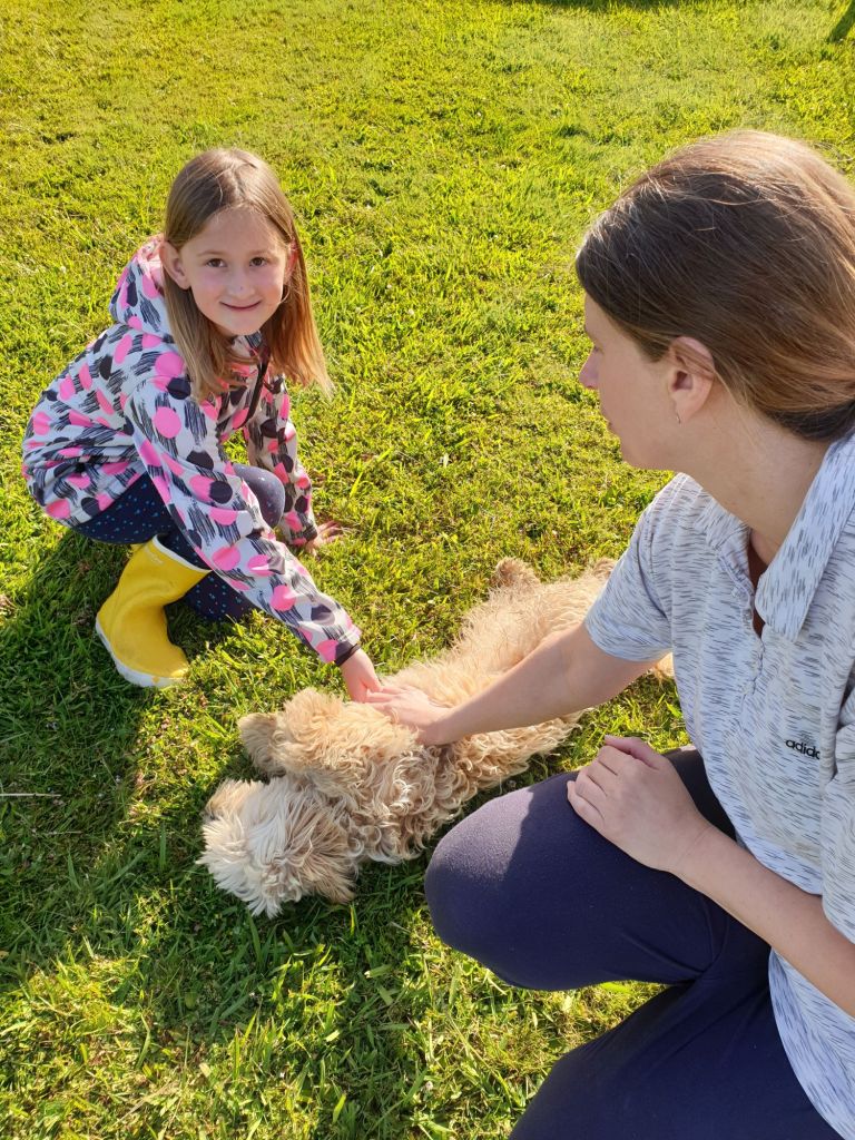 Als wir mit Loki wieder vertraut waren, bemerkten wir, dass er immer noch einen Drang hatte, mir das Gesicht abzuschlecken und wir bemerkten, dass er nicht mehr so verrückt nach dem Ball war. Das hing vielleicht auch damit zusammen, dass Chanell immer mit ihm spielte und er sich über eine Pause freute. Loki war aber auch größer geworden. Das sieht man daran, dass er deutlich einfacher an mein Gesicht herankommt.