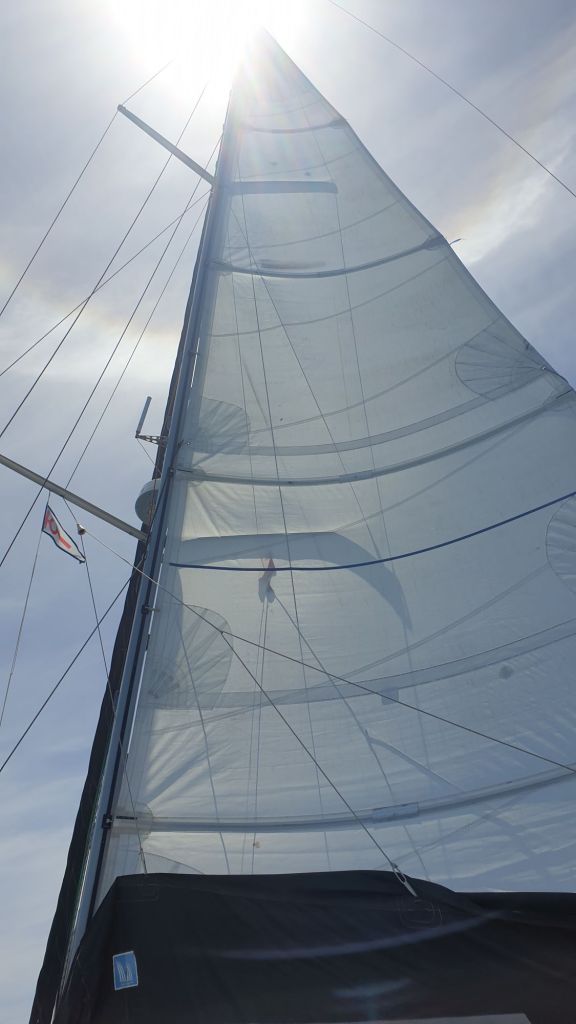Abgesehen von einer leichten Windabnahme passiert absolut gar nichts. Ja, man könnte eventuell ausreffen, aber dann steht die Fock in der Abdeckung des Groß noch schlechter. Gerade nachts segeln wir ohnehin eher konservativ. Da muss ich mir den Aufwand, im Dunkeln alleine draußen herumzuturnen, nicht wirklich geben. Das ist bei Tageslicht viel entspannter.