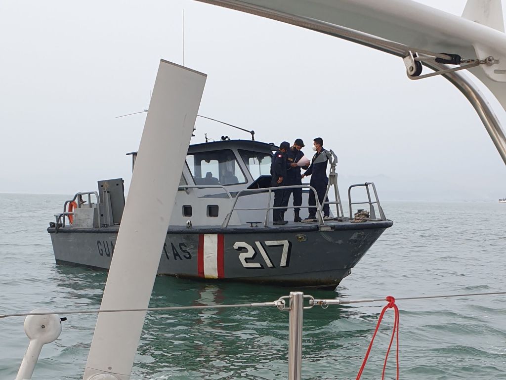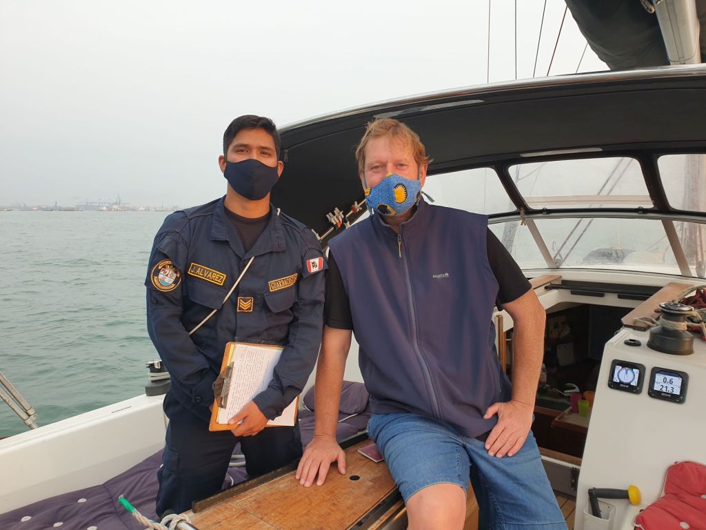 Haben wir noch Fragen? Nein, eigentlich nicht. Obwohl da gibt es doch diese wenig erfreulichen Geschichten über das Einklarieren von Segelyachten in Peru. Wie sieht er das? Glaubt er, dass da Schwierigkeiten auf uns zukommen? Nein, er sehe keine Probleme. Alles gut. War das jetzt eine keine Ahnung, ich sage einfach mal was Nettes oder doch eine ehrliche Antwort? Wir wissen es nicht. Bei all dem nicht darf man auch nicht vergessen, dass die Seegrenze offiziell angeblich noch geschlossen ist. Wir sind leidlich perplex.