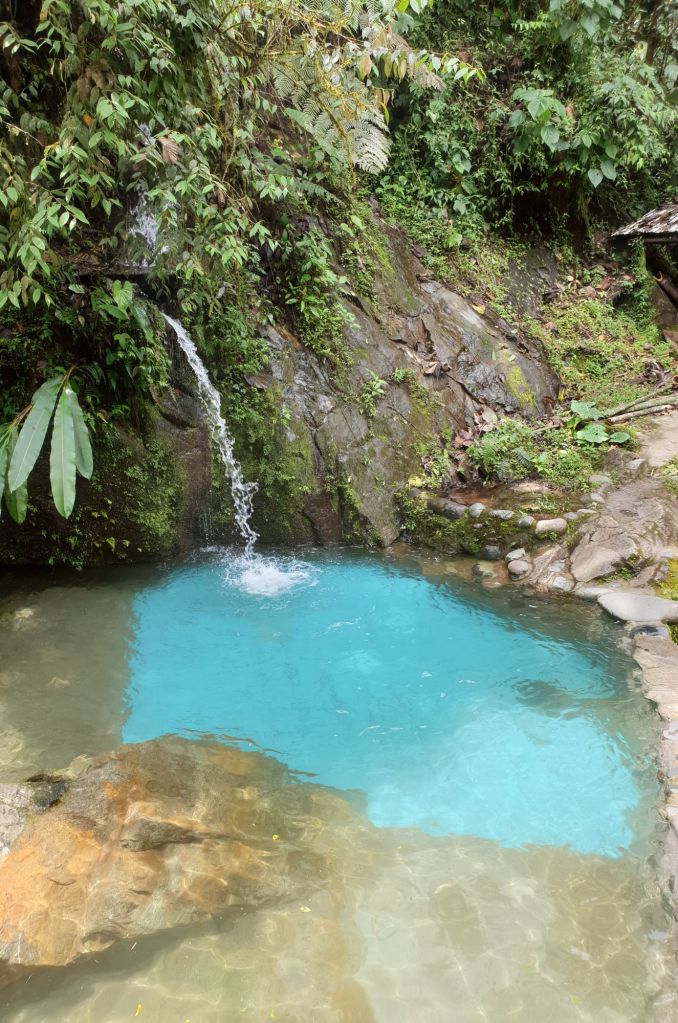 Ehrlicher Weise muss schließlich noch angemerkt werden, dass der Badebereich zum Zeitpunkt unseres Besuches aufgrund der Regenfälle vorhergehender Tage leider nicht nutzbar war. „Río cerrado!“ So war uns der volle Genuss leider verwehrt und es blieb nur, sich die Freuden eines ansonsten selbstverständlich (räusper) ausgelebten 12m-Sprungs in die Tiefe in schillernden Farben vorzustellen.