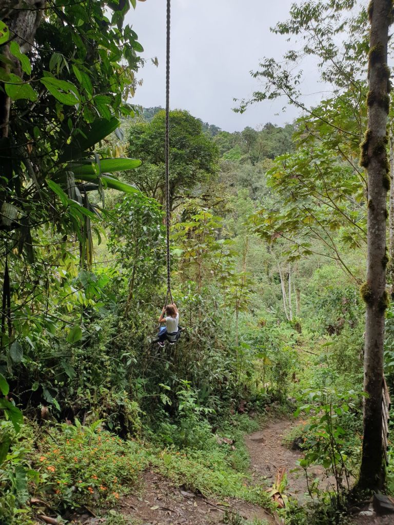 Ecuadorianer lieben die große Schaukel. Keine Frage, dass sich eine solche auch hier findet. Nicht drängeln, jeder kommt dran und kann sich juchzend in den Ausblick des Nebelwaldes schwingen.