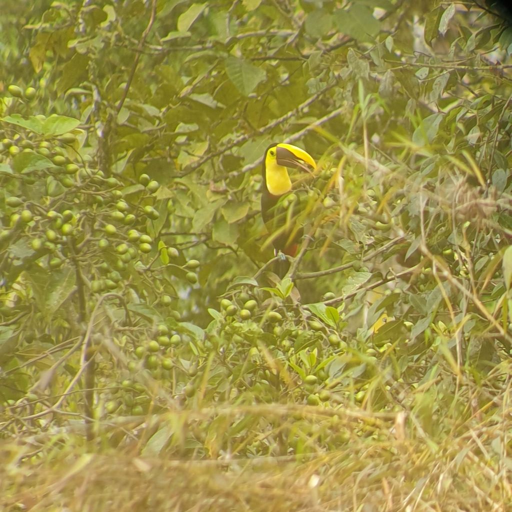 Immer wieder hören und sehen wir – ok, vor allem unsere Führerin – kleine und größere Vögel in den Zweigen und der Luft. Natürlich sind es dann zwei Goldkehltukane, die einen abschließenden Höhepunkt bilden.