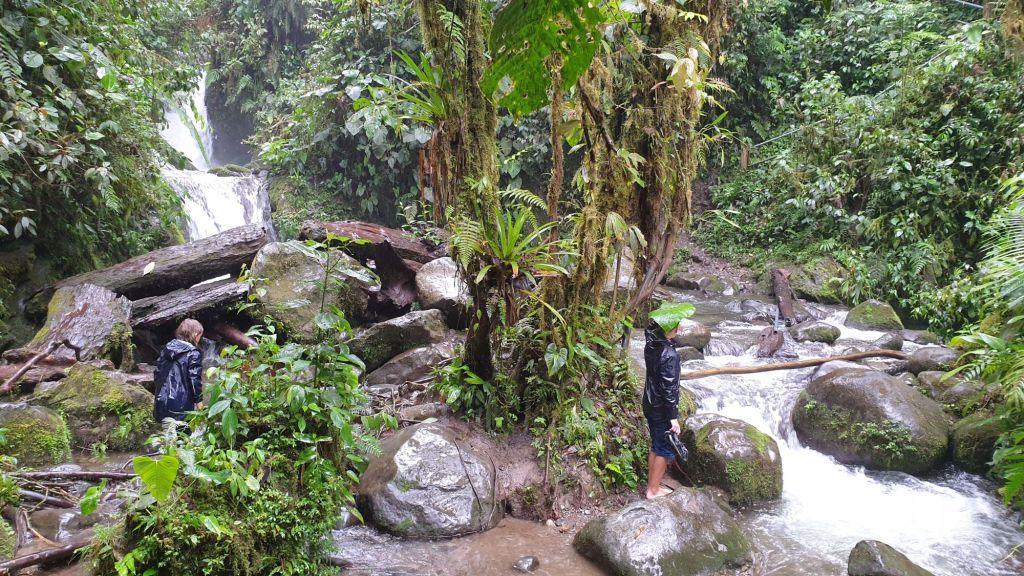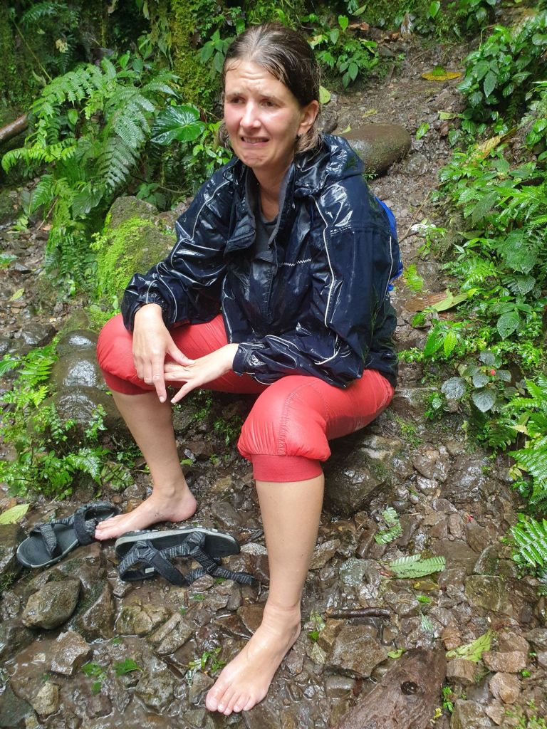 Und es hört auch danach nicht auf zu regnen. Auf dem Hinweg noch bescheidene Rinnsale stürzen den Weg hinab. Der Vorschlag des Skippers, noch einen kleinen Abstecher zum Nambillo-Wasserfall zu machen wird mit deutlicher ¾-Mehrheit abgelehnt. Wir werden ihn an einem trockeneren Tag besuchen…