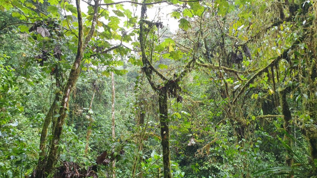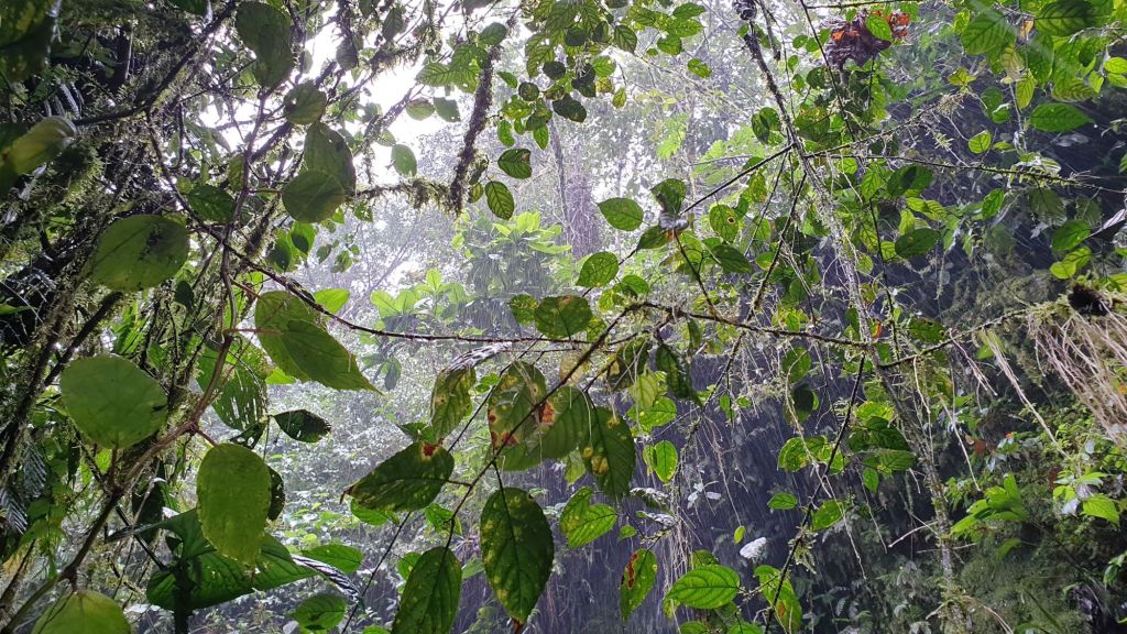 Der Nebelwald heißt im Deutschen ja wohl nicht zuletzt deswegen Nebelwald, weil es da öfters mal Nebel geben kann. Obwohl man ja auch hier mal wieder Haare spalten kann. Offiziell geht der Nebelwald in Äquatornähe von ca. 2.500m bis auf 3.500m Höhe. Darunter, so ab 1.500m spricht man von Wolkenwald. Und ehrlich gesagt gefällt uns dieser auch im Englischen verwendete Name besser… „cloud forest! Was ist Nebel letztlich anderes, als eine Wolke am Boden?! Und was ist eine Wolke letztlich anderes, als Wasser in der Luft?!?! Da ist es bis zum Regen nur noch ein ganz kleiner Schritt.