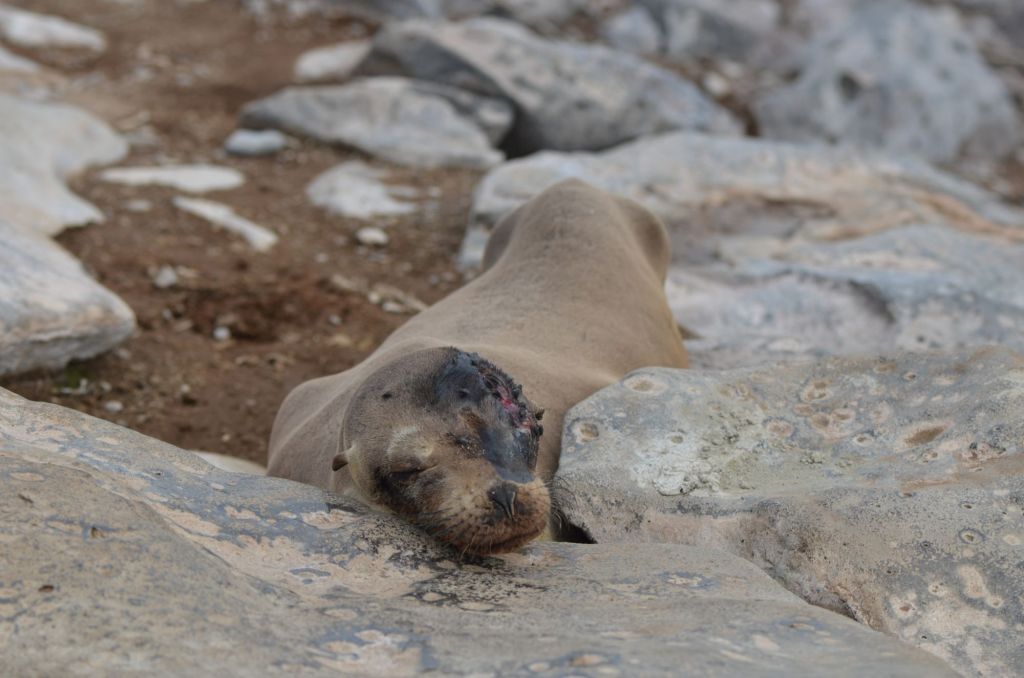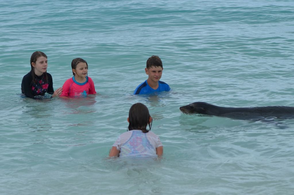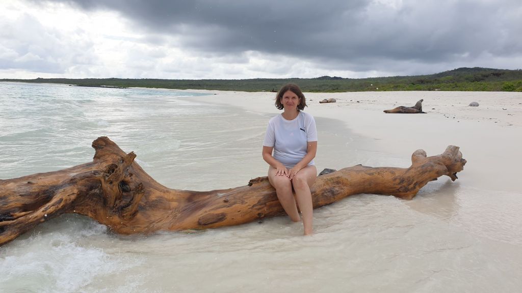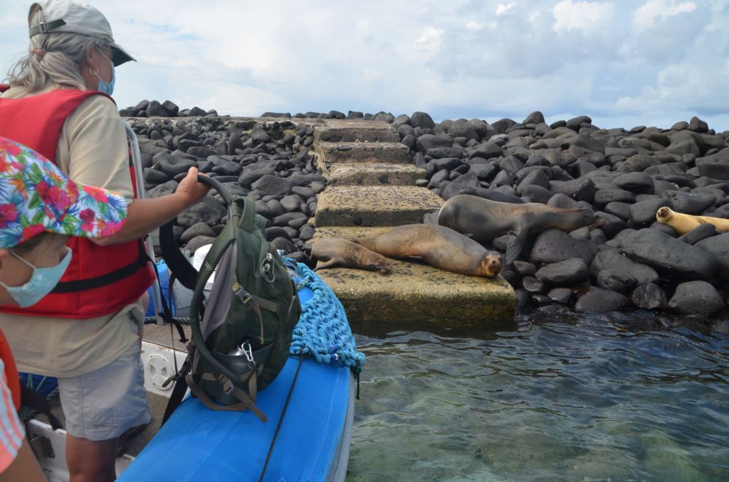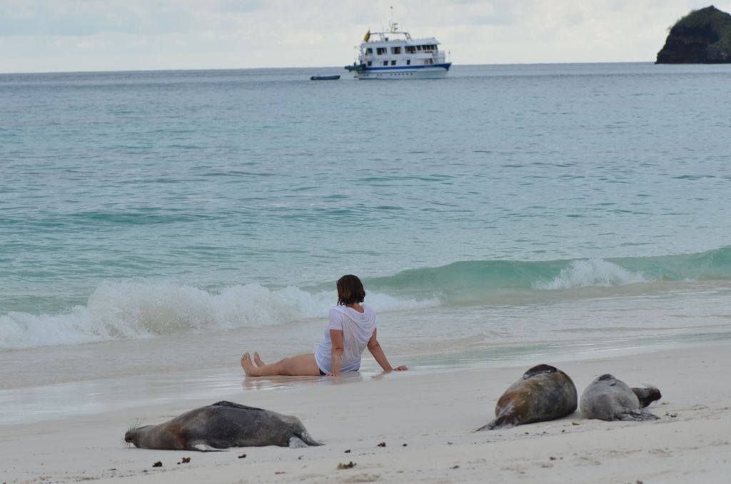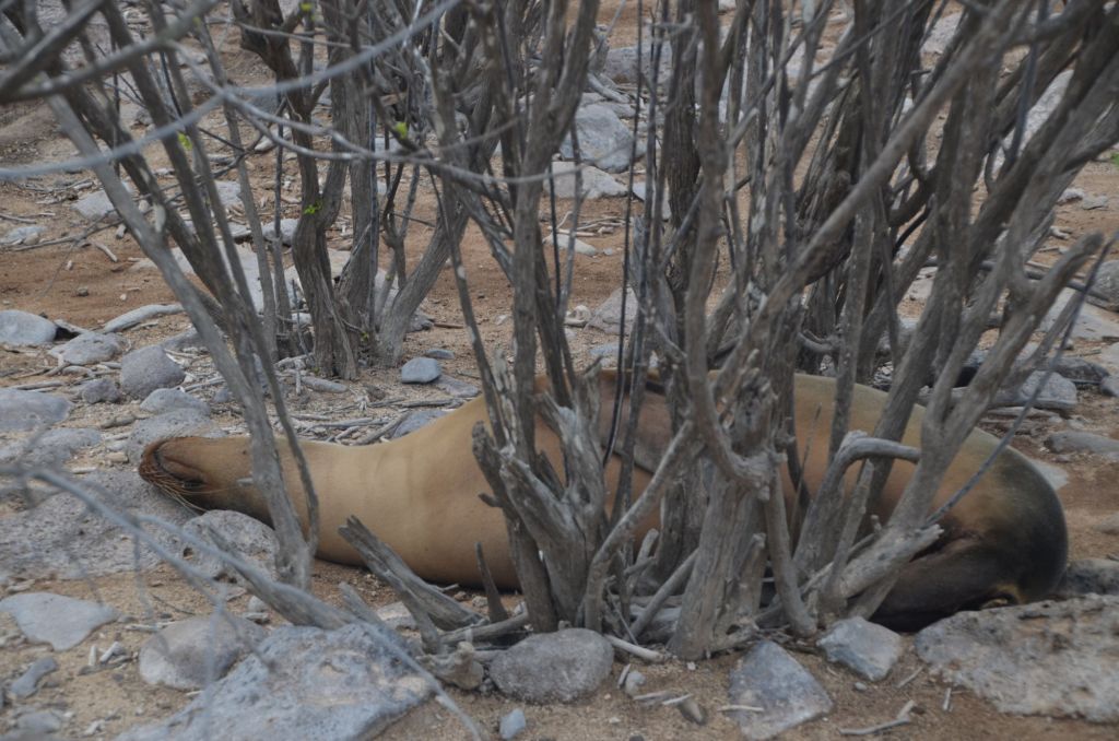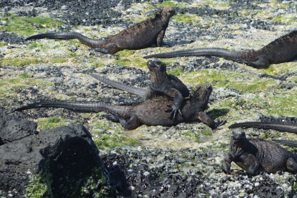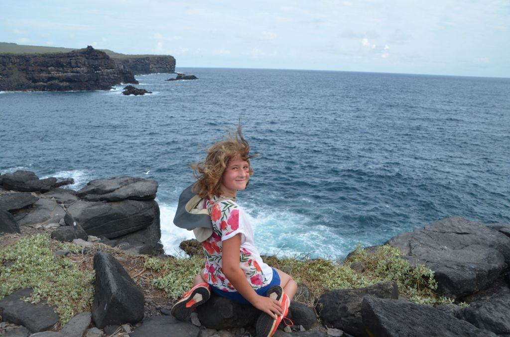 Wir haben ein Paar Gabelschwanzmöwen mit einem Baby gesehen. Leider ist das Stück Kalmar, das ein Elternteil gefangen hat, zu groß für den Kleinen und der Partner erhält ihn um ihn zu zerkleinern. Und dann bekommt auch die Babymöwe etwas ab. Die Möwe hat rote Augenlider. Wozu genau die gut sind, weiß ich nicht, aber ich weiß, dass sie richtig cool aussehen. Es ist Mailas Lieblingsmöwe.