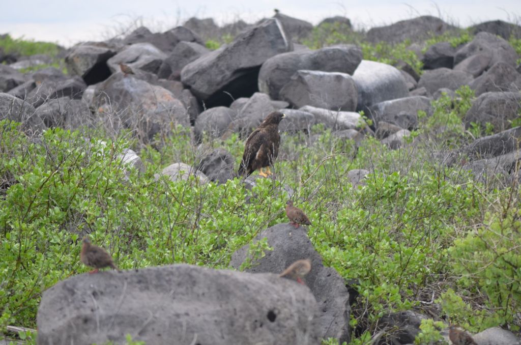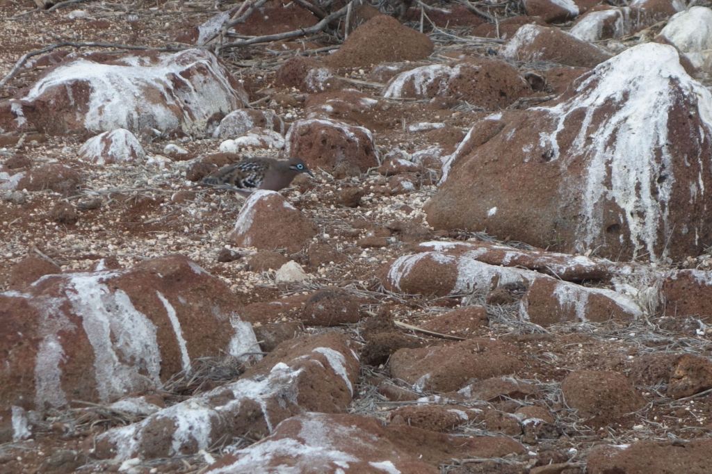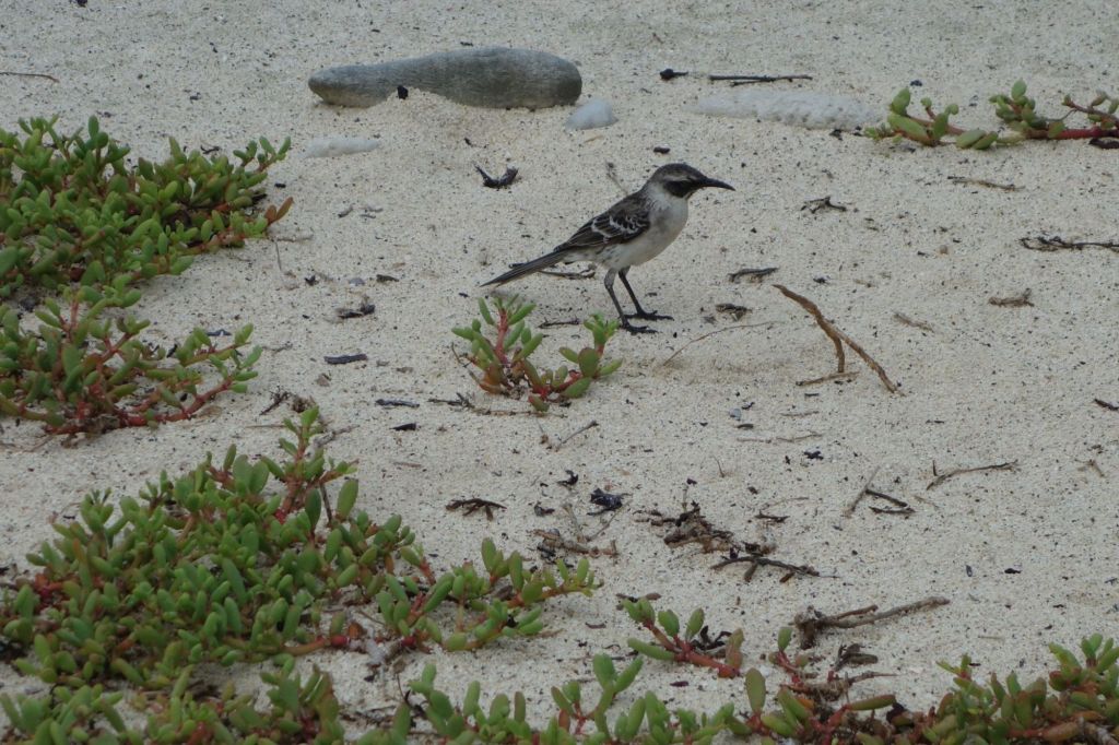 Ein weiteres auf Galápagos lebendes fliegendes Tier ist eine Drossel und zwar die Galápagos-Spottdrossel. Ihre langen Beine und ihr grau-schwarzes Gefieder sind auffällig, wie ihr langer Hals.