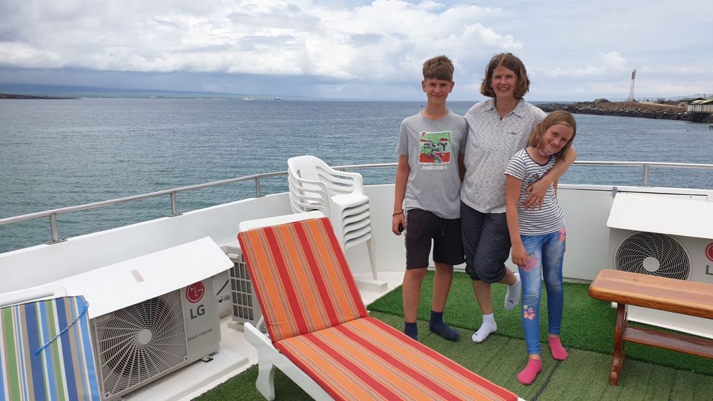 Am Flughafen werden wir von Toni mit unseren Unterlagen empfangen. Er hat sich schon um das für Galápagos notwendige (natürlich kostenpflichtige) „Salvoconducto“ sowie unsere Gepäckaufkleber gekümmert. Das erspart uns einiges an Schlangestehen. Dazu hat er unsere Testergebnisse ausgedruckt und es gibt ein paar Informationen zu unserem „neuen Schiff“, die Angelito I.