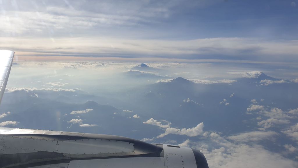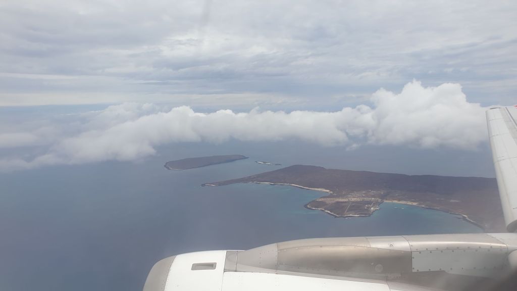Lustig ist auch, wenn man sich mal das Flugprofil von Quito bis zur nach Galápagos obligatorischen Zwischenlandung in Guayaquil vor Augen führt. Von 3.000m auf Meereshöhe… im Grunde ist das nach sehr kurzem Steigen nicht mehr als ein halbstündiger Sinkflug runter zum Zielflughafen. Ganz entspannt genießen wir dabei die Aussicht.
