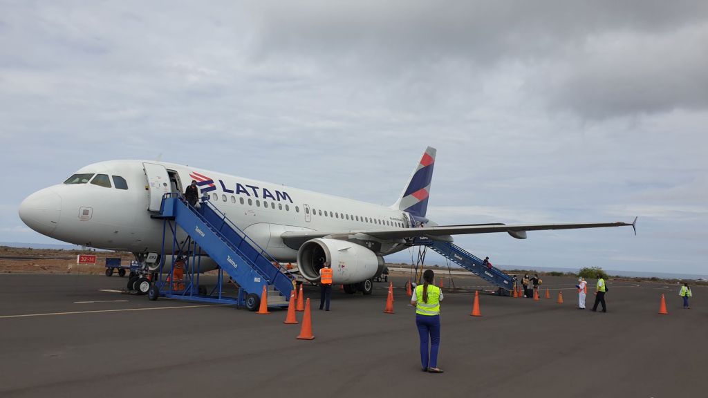 Interessant ist das Abstandskonzept auf dem Flughafen. Über jeden zweiten Sitz im Abflugbereich zieht sich ein Banner mit der freundlichen Aufforderung, diesen frei zu lassen. Den Luxus solcher Platzverschwendung leistet man sich im Flugzeug dann allerdings nicht mehr. Spätestens nach der Zwischenlandung in der größten Stadt des Landes Guayaquil ist der Flieger brechend voll.