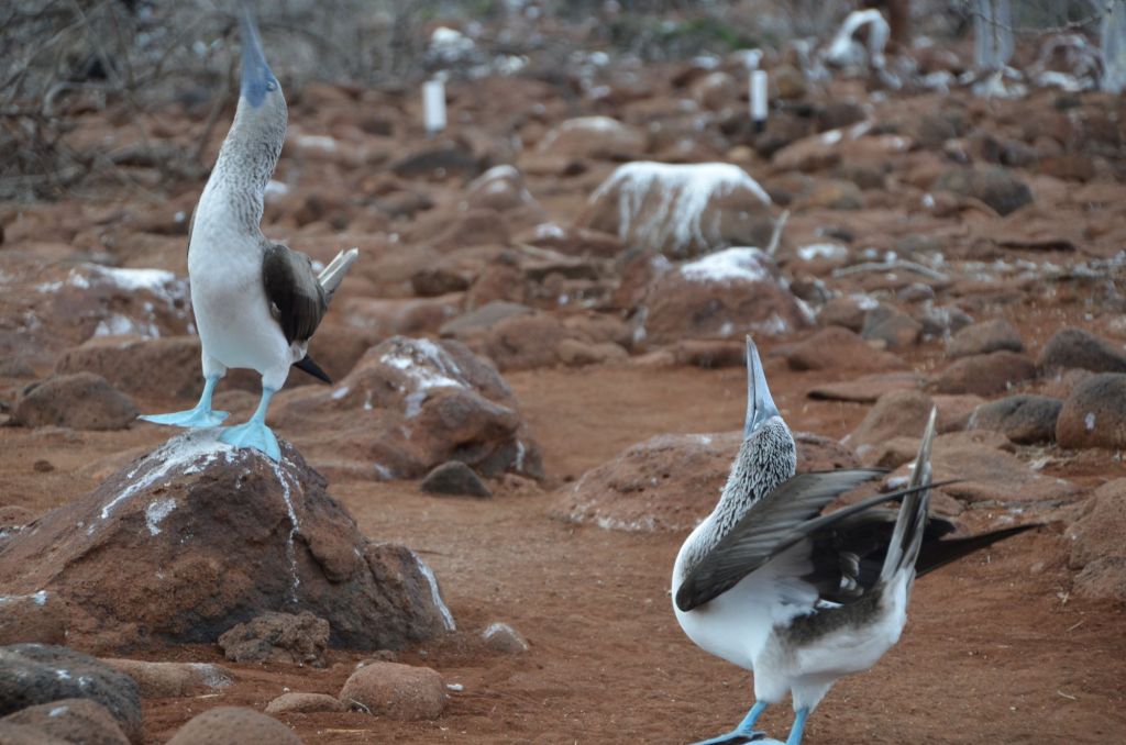Ob nun bei der Balz oder einfach nur so in die Gegend starrend, werden wir auch von den Blaufußtölpeln weitgehend ignoriert. Sie nehmen die Menschen schlichtweg nicht als Bedrohung wahr. Warum sollte man dann unnötig Energie für eine Flucht aufwenden?!