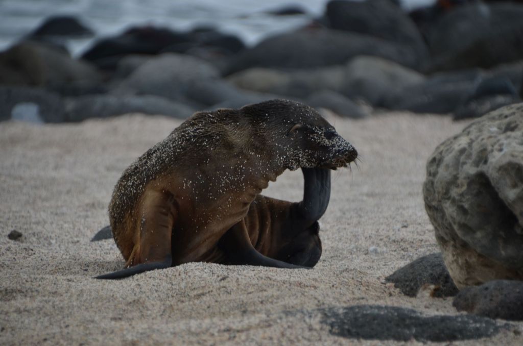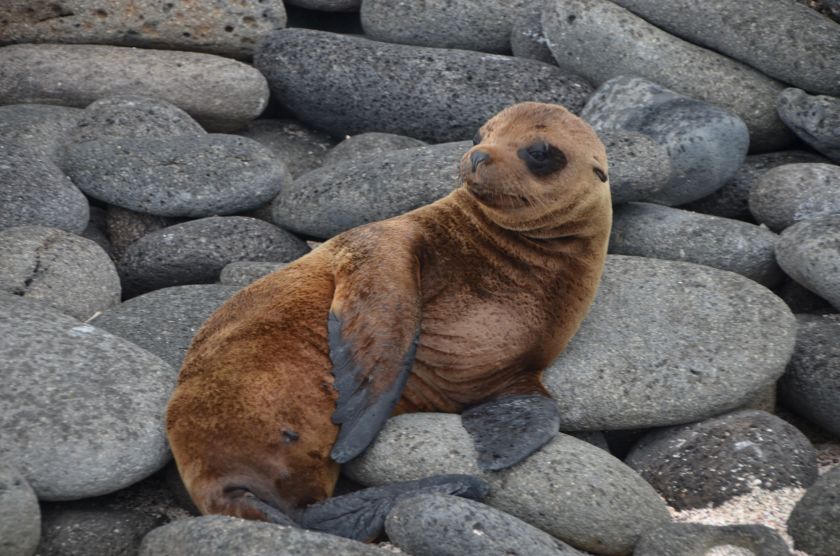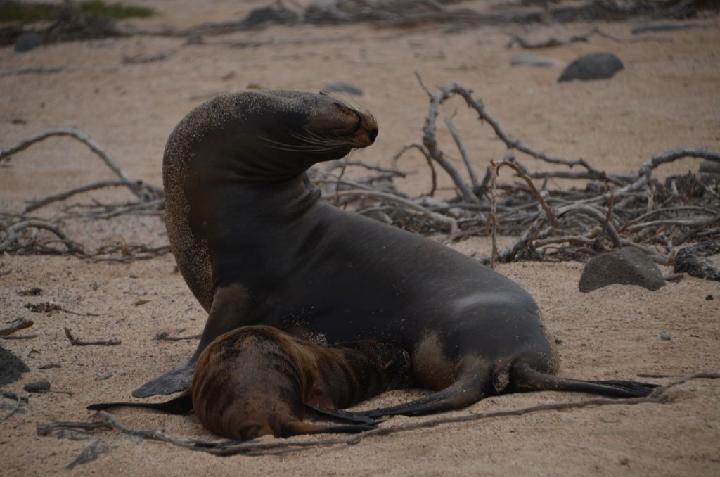 Seelöwen sind dann auch die ersten Tiere auf den Galápagos-Inseln, die uns nicht konsequent ignorieren. Im Gegenteil. Neugierig robben sie auf uns zu. Mal langsam, mal forsch, mal laut, mal leise. Früher hat man sie dabei gewähren lassen, seit einiger Zeit gibt es die Ansage, sich als Mensch zurückzuziehen. Dem kommen wir gerade bei den laut brüllend ihre Zähne zeigenden Exemplaren ausgesprochen gerne nach.