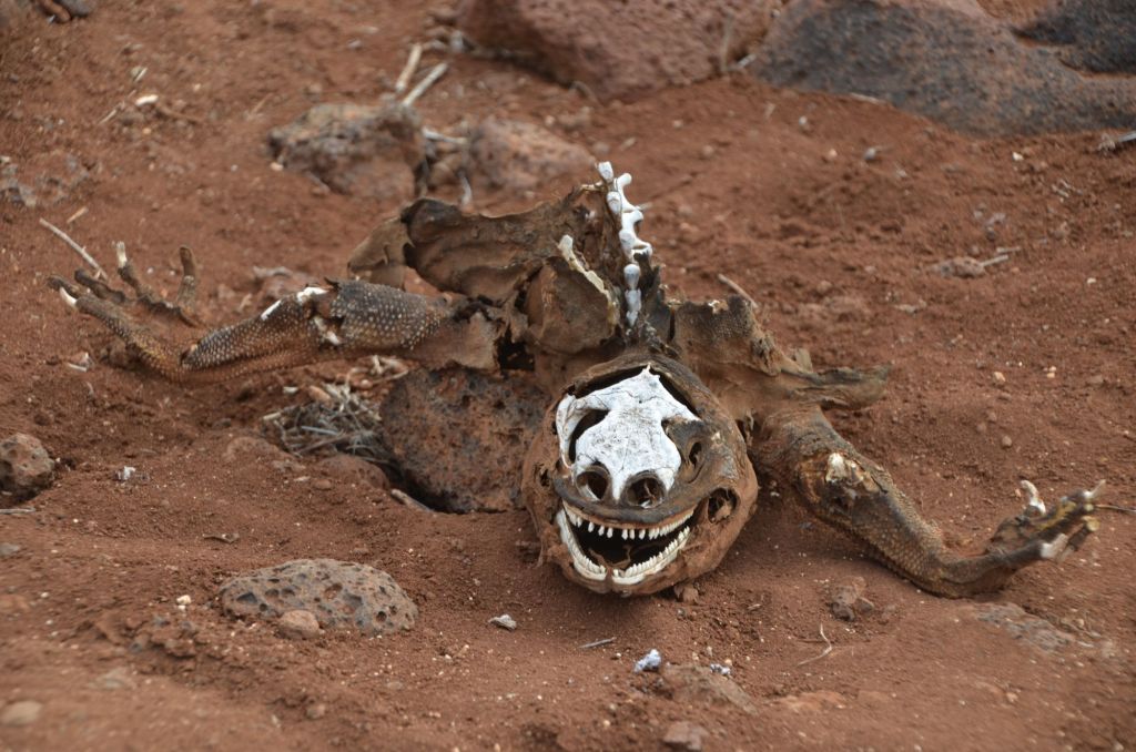 Während all diese Tiere in unterschiedlichen Stadien der Fortpflanzung, dem Beginn des Lebens sind, stoßen wir auch auf das andere Ende der Existenz. In unterschiedlichen Stadien des Übergangs vom Leben zurück in den Staub, aus dem wir alle kommen, liegen Kadaver teilweise sicher schon mehrere Jahre herum. Das Klima ist trocken, Aas-Verwerter dagegen kaum gegeben. Da dauert es einfach eine Weile, bis das Ende des letzten, unausweichlichen Weges erreicht ist.