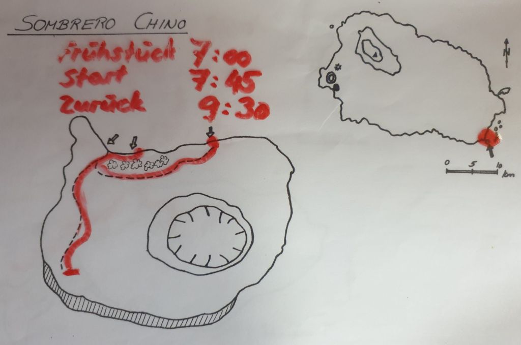 Dabei hatte schon der Bau dieses Weges Probleme mit sich gebracht. In dem verwendeten Holz hatten sich Ameisennester versteckt. Die eingeschleppten Tiere haben der hiesigen, spärlichen Fauna wenig überraschend nicht sehr gut getan. Inzwischen wurde der Fehler korrigiert und die wenigen verbliebenen Ameisen gehören auf die Insel. Ansonsten sehen wir abgesehen von ein paar Lavaechsen keine Tiere.