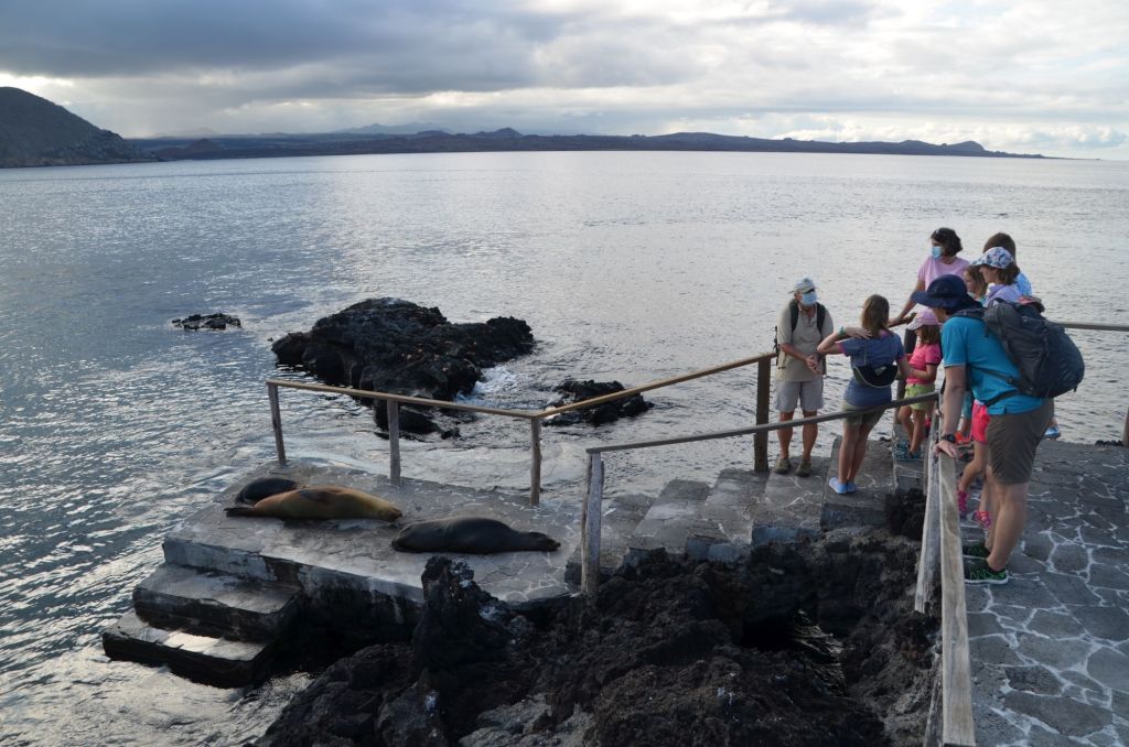 Zurück am Anlandungsplatz haben es sich wieder Seelöwen bequem gemacht. Auf so einer eben planierten Treppe liegt es sich auch viel schöner als auf kantigen Steinen.