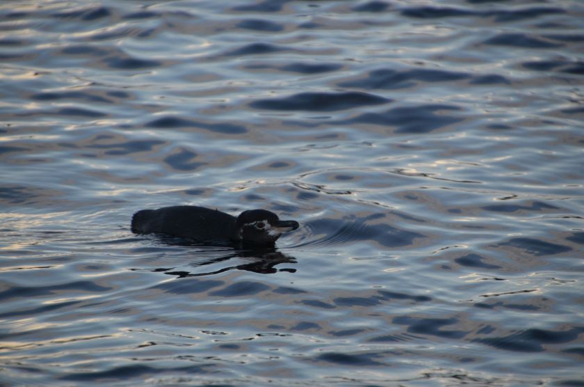 Kaum unterwegs, sehen wir unsere ersten Galápagos-Pinguine. Immer noch auf der Südhalbkugel sind das die nördlichsten Vertreter ihrer Vogelfamilie.