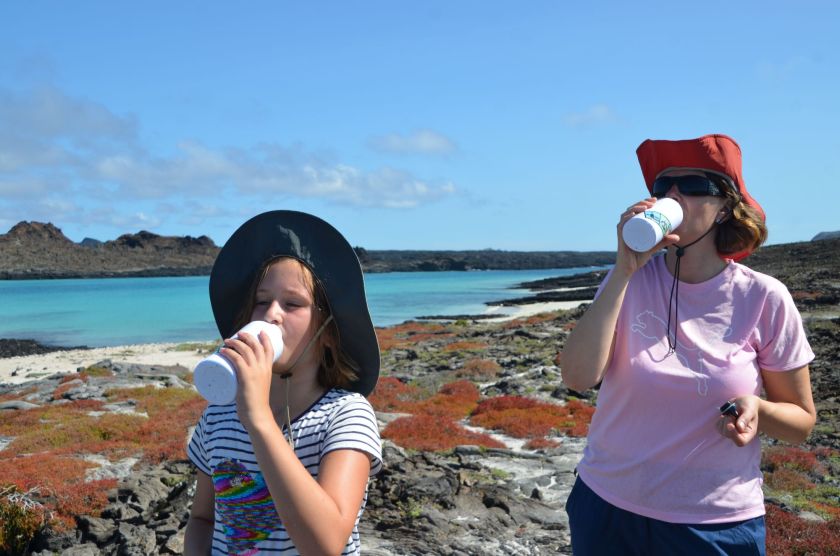 Es wird immer heißer. Da kommt eine Abkühlung sehr gelegen. Noch vor dem Mittagessen machen wir unseren ersten Schnorchelausflug. Recht flaches Wasser, ein paar Fische, auch mal ein Seelöwe und vor allem viel Spaß.