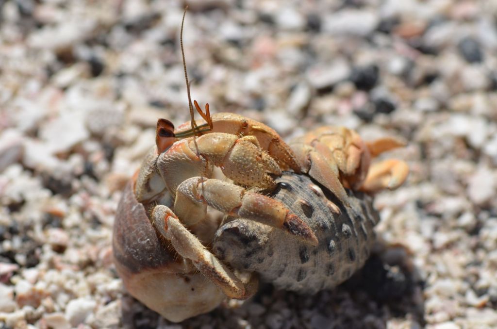 Später werden wir dann noch Zeuge einer ganz besonderen Auseinandersetzung. Mitten auf dem Weg streiten sich zwei Einsiedlerkrebse um eine schützende Behausung. In der zunehmenden Hitze ist das ein gefährliches Unterfangen, insbesondere für den Verlierer. Doch Schneckenhäuser in passender Größe liegen hier auch nicht gerade rum wie Sand am Meer. Wer überleben will, muss kämpfen…